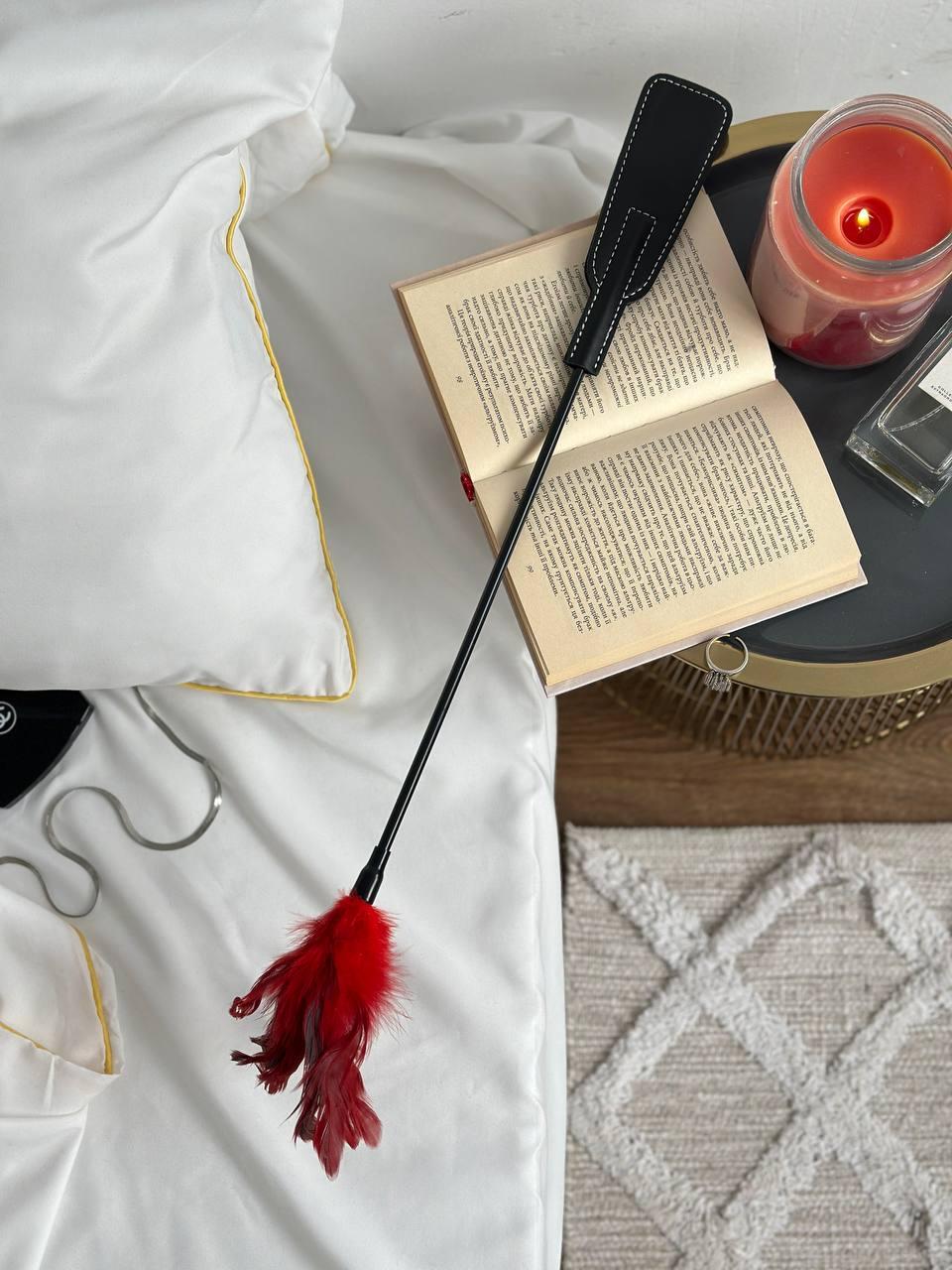 Флогер чорний з червоним пір'ям шкіряний AS1079 Ghazel фото - Luxbikini