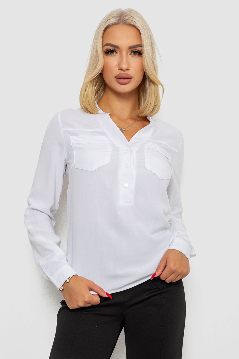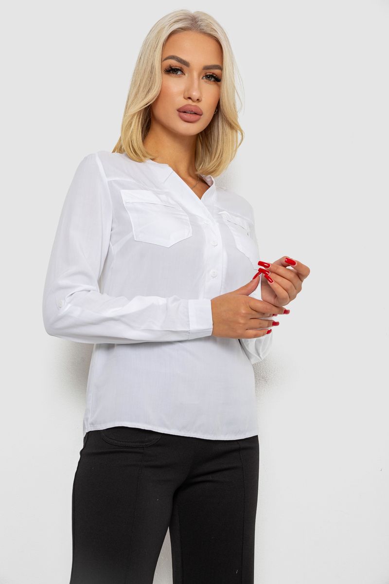 Блуза однотонна, колір білий, 230RR-96 : Колір - Білий, Розмір - L (арт. 230RR-96)