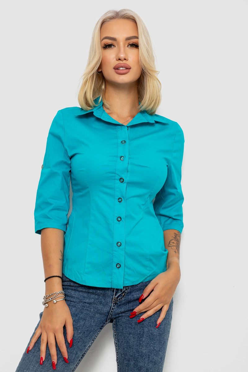 Сорочка жіноча однотонна, колір бірюзовий, 230R068-4