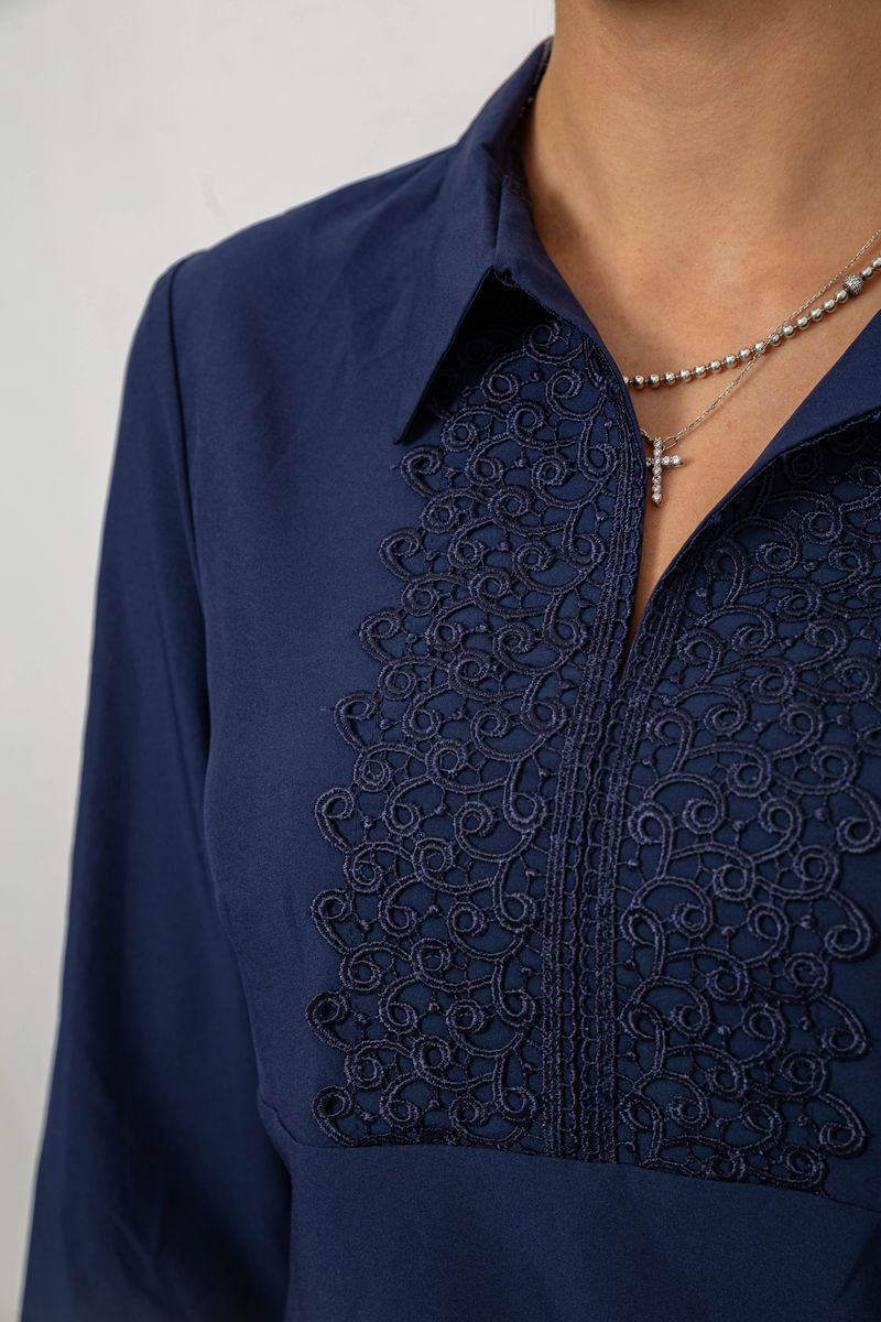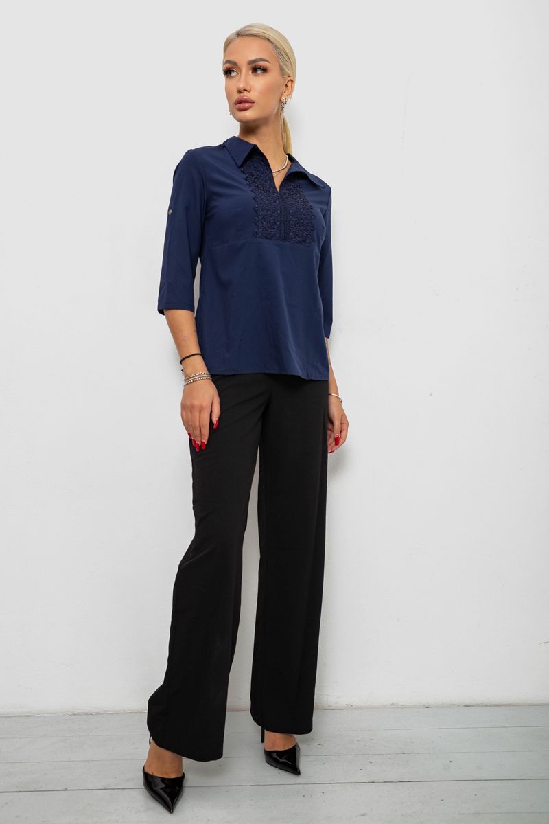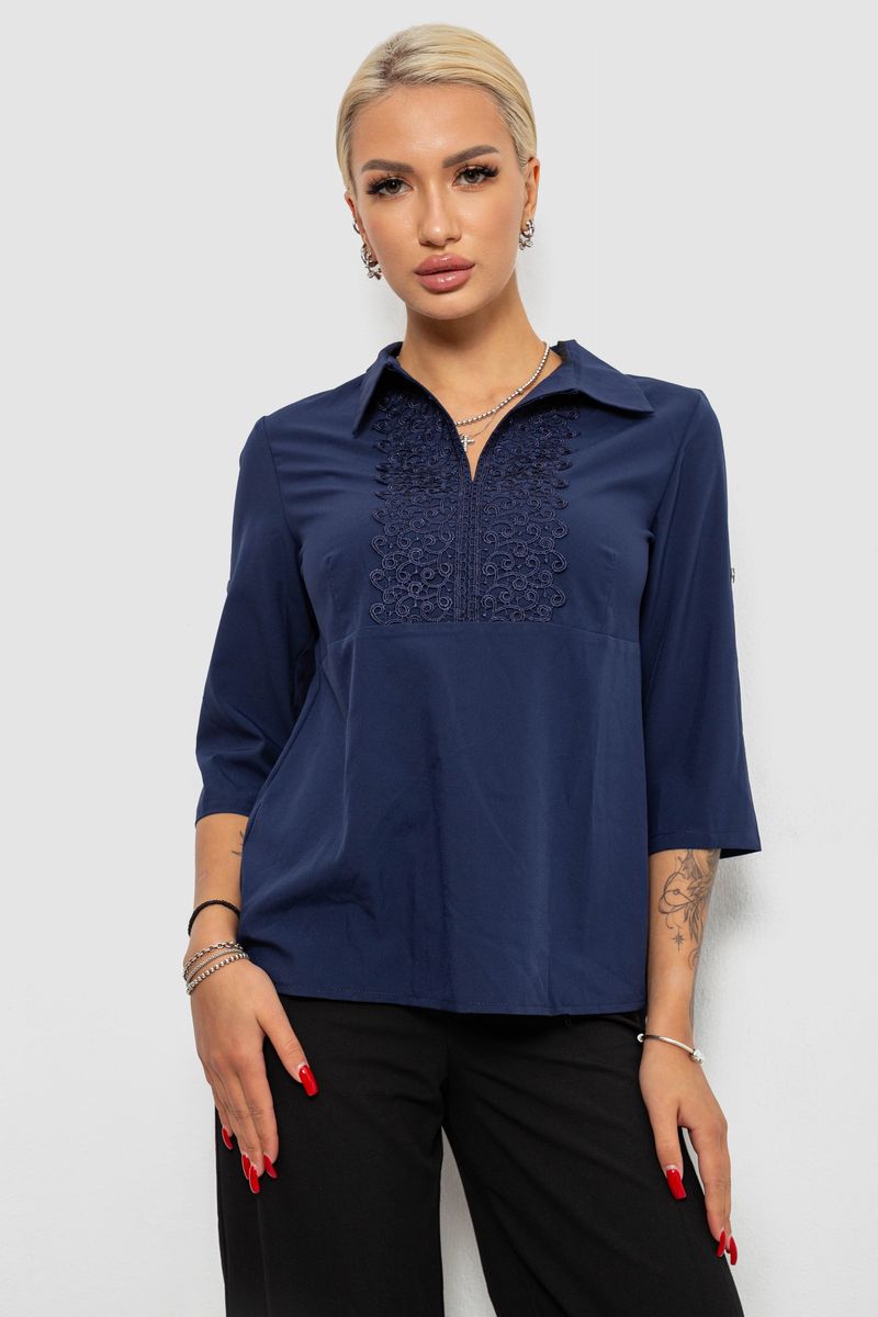 Блуза однотонна, колір синій, 230R70-1