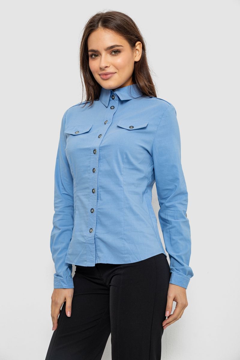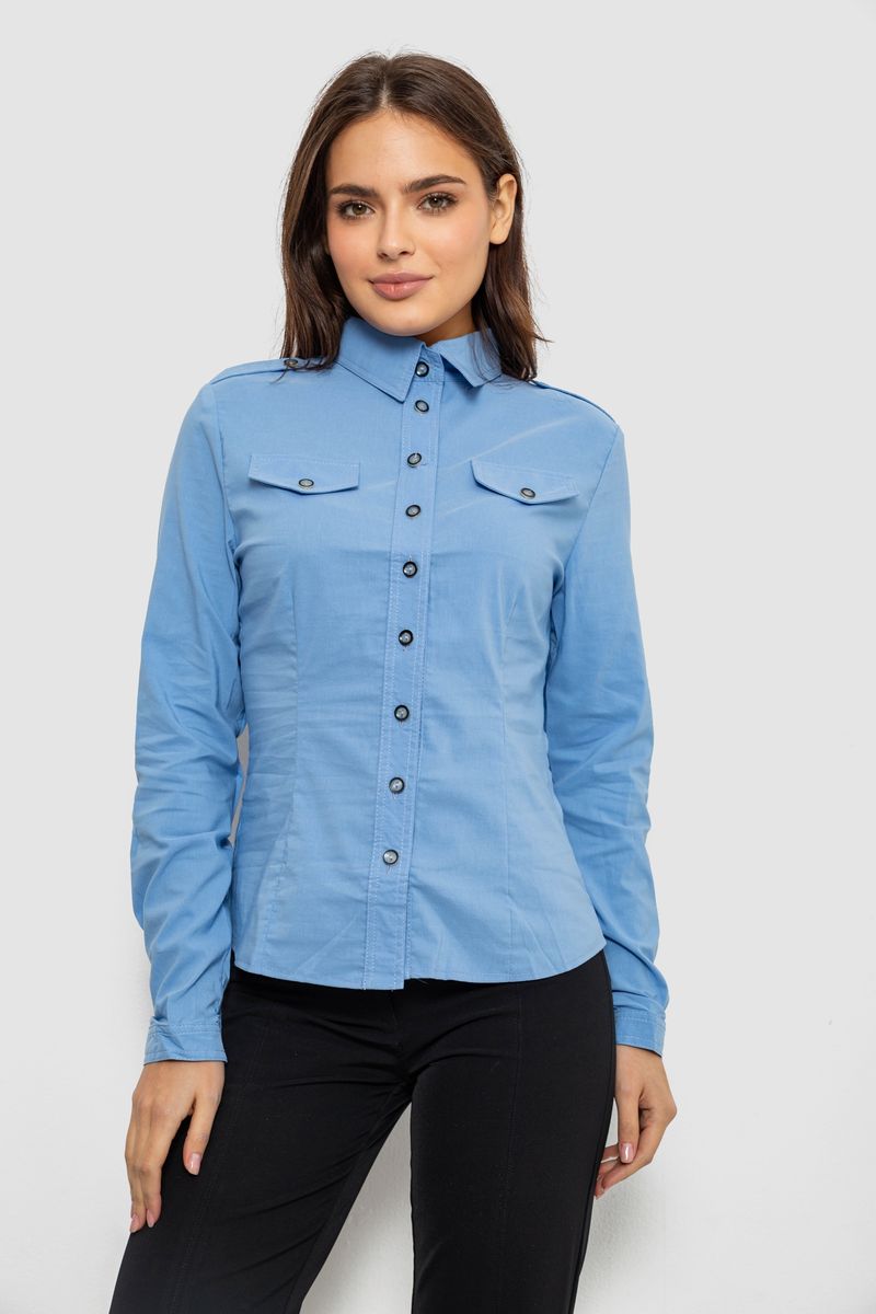 Сорочка жіноча однотонна, колір блакитний, 230R068-9 : Колір - Блакитний, Розмір - S (арт. 230R068-9)