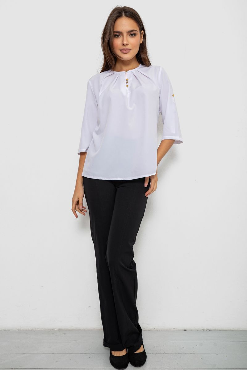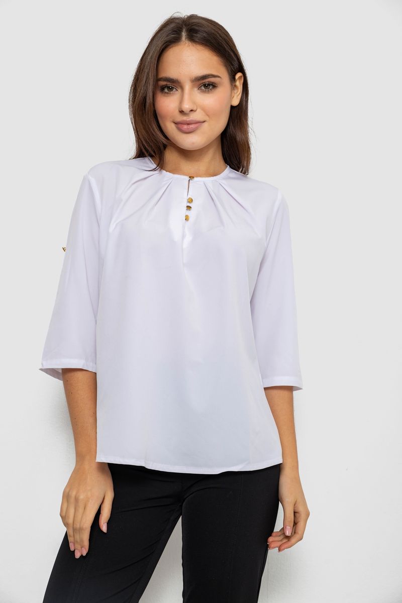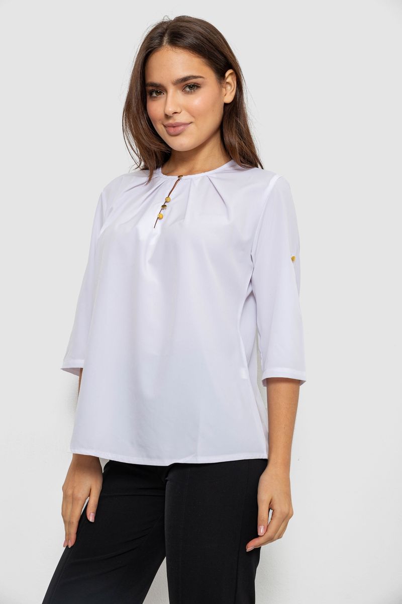 Блуза однотонна, колір білий, 230R112-10 : Колір - Білий, Розмір - S (арт. 230R112-10)