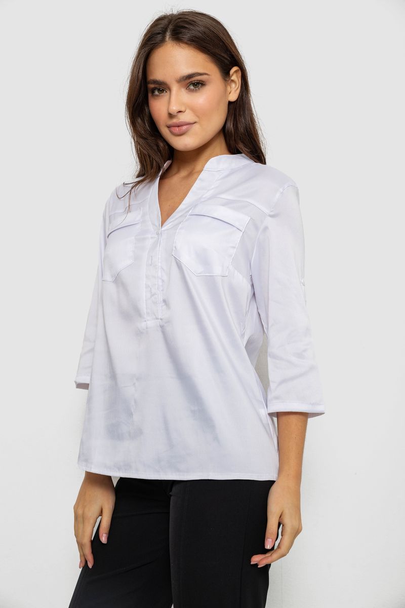 Блуза однотонна, колір білий, 230R96-1
