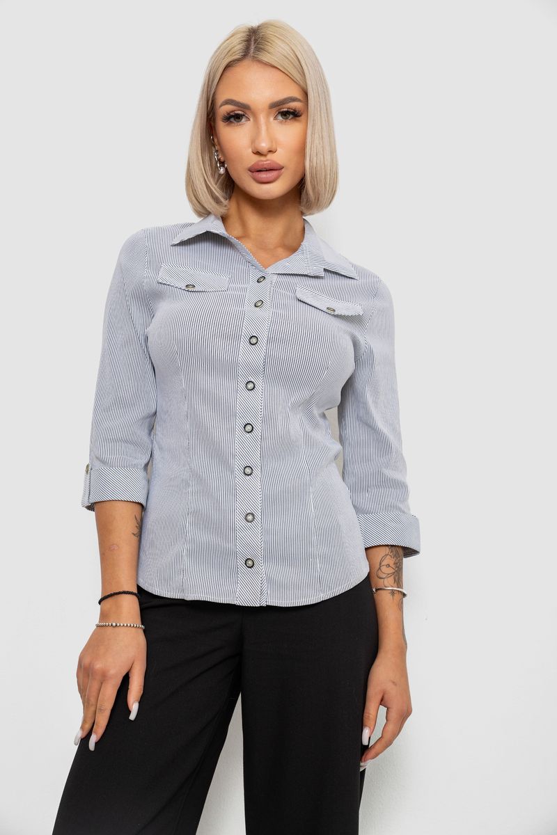 Сорочка класична в смужку, колір біло-сірий, 230R643-1