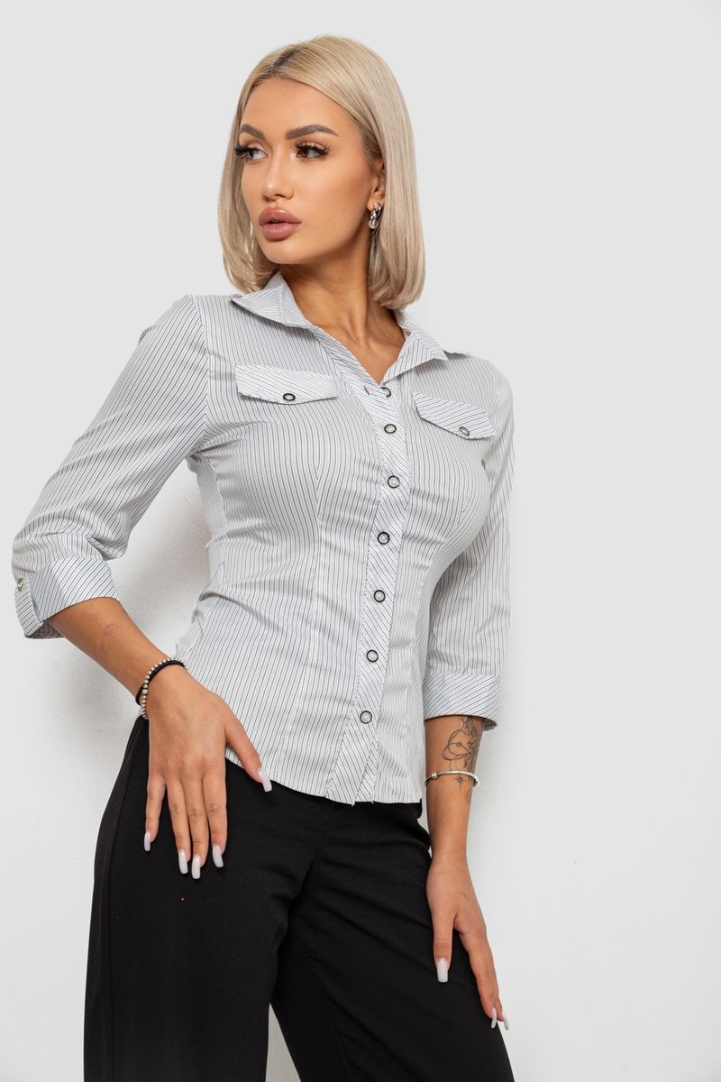 Сорочка класична в смужку, колір біло-сірий, 230R643-2