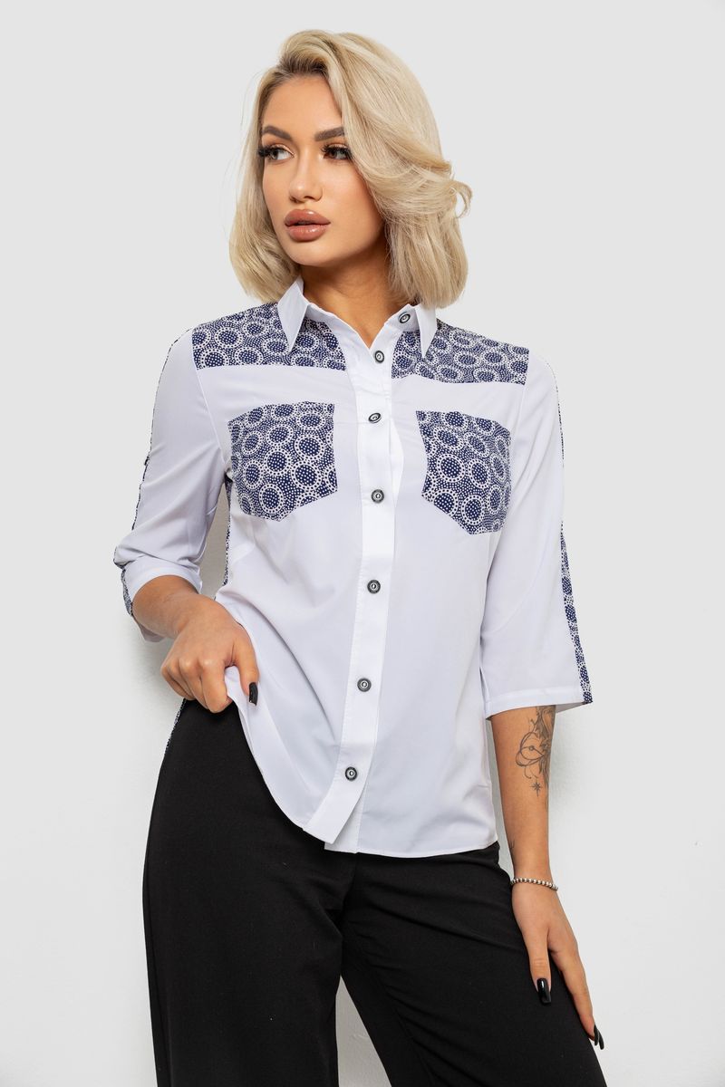 Сорочка класична з принтом, колір біло-синій, 230R7214