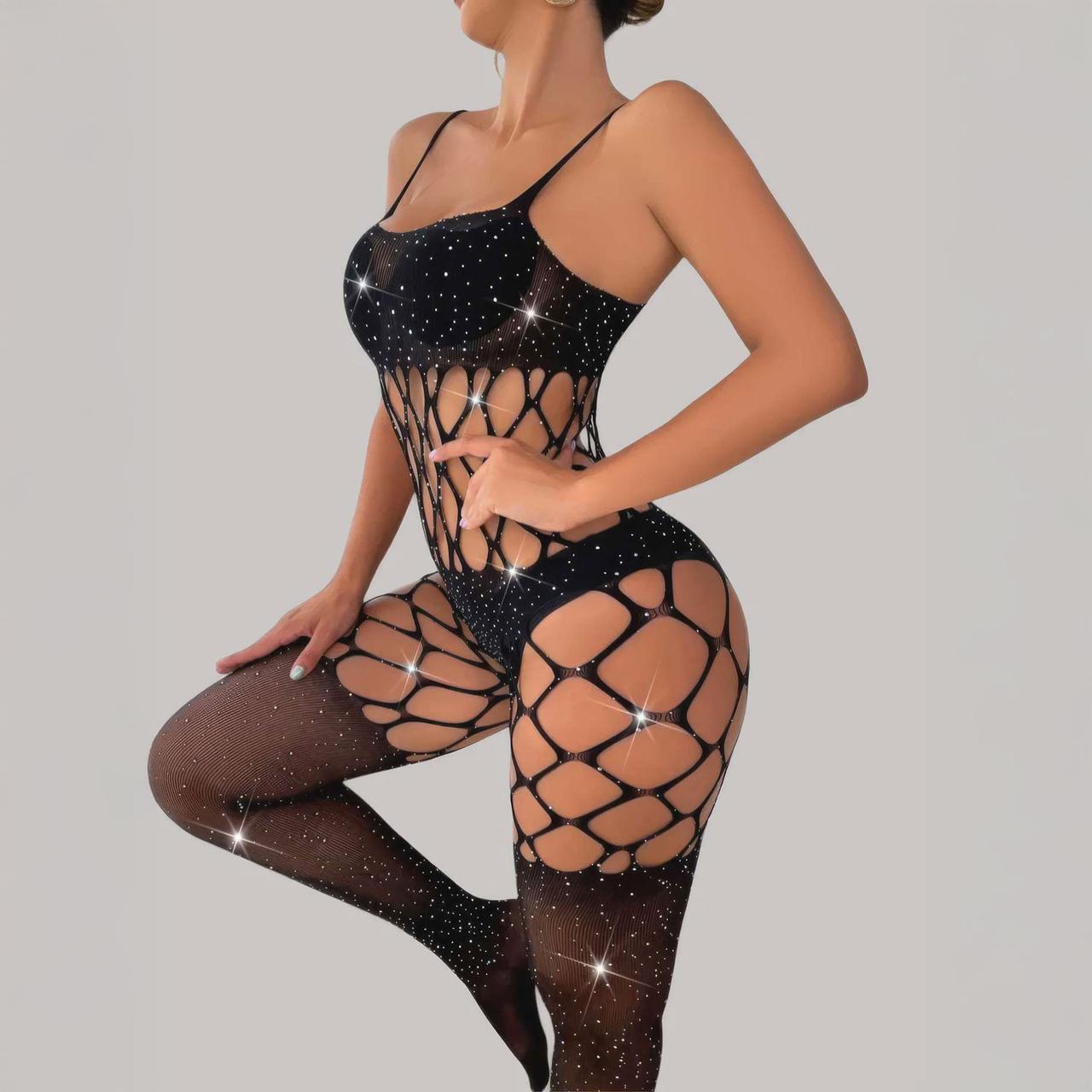 Бодістокінг еротичний з відкритим доступом зі стразами S/M/L Чорний