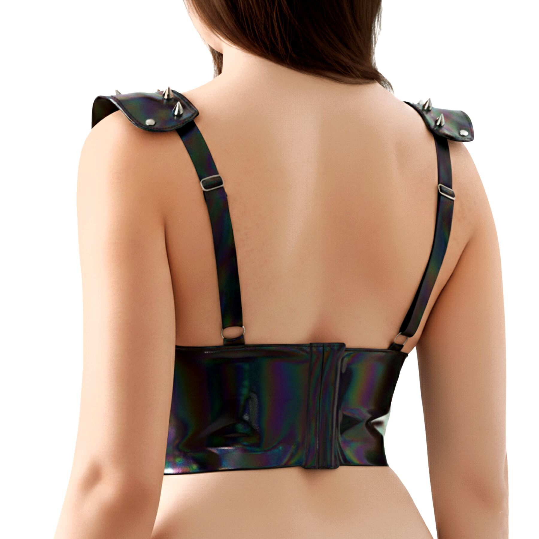 Лакований вініловий ліф з шипами Art of Sex - Mistress, чорний з ефектом голограми, розмір S