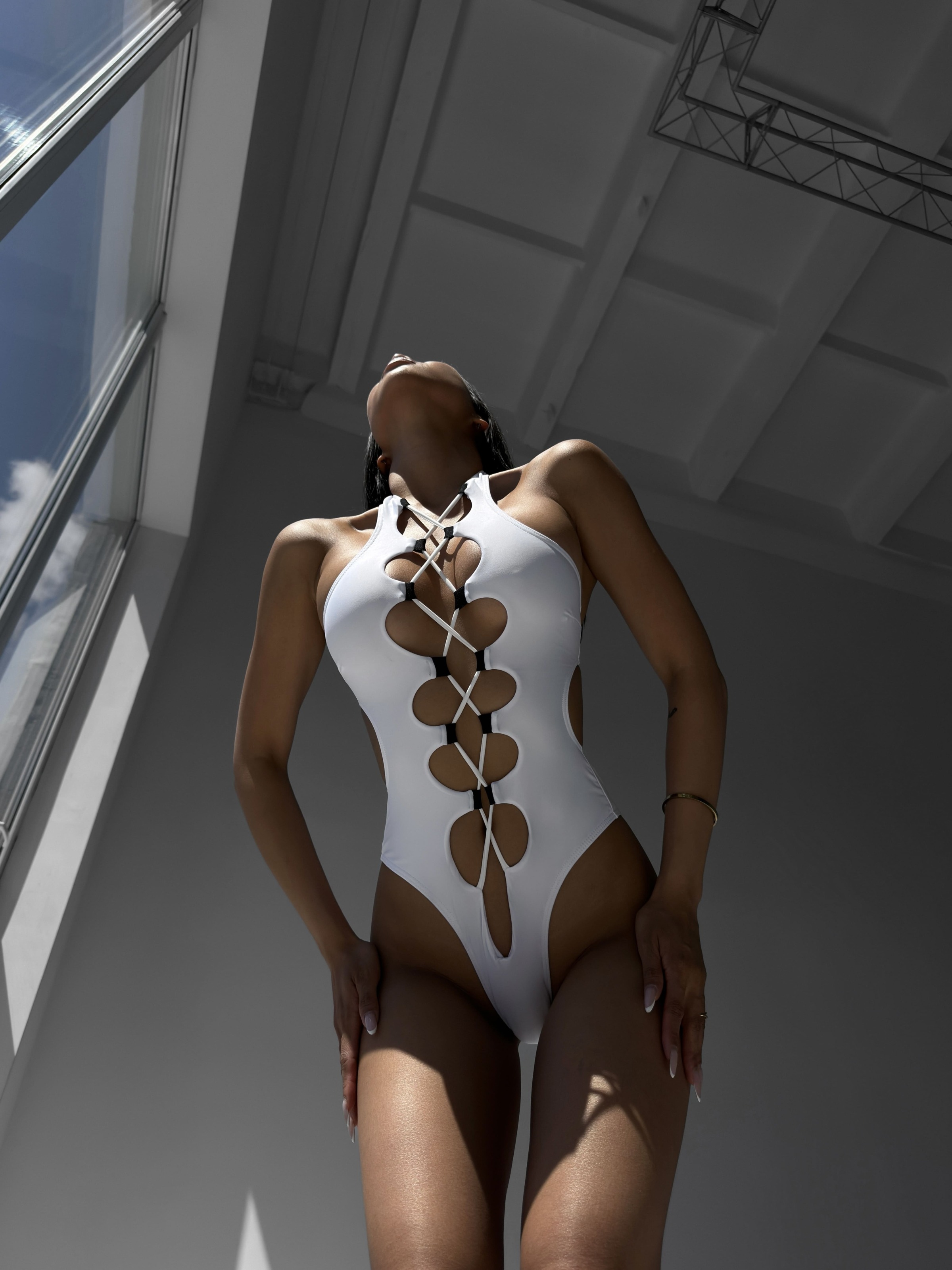 Купальник суцільний зі шнурівкою білий