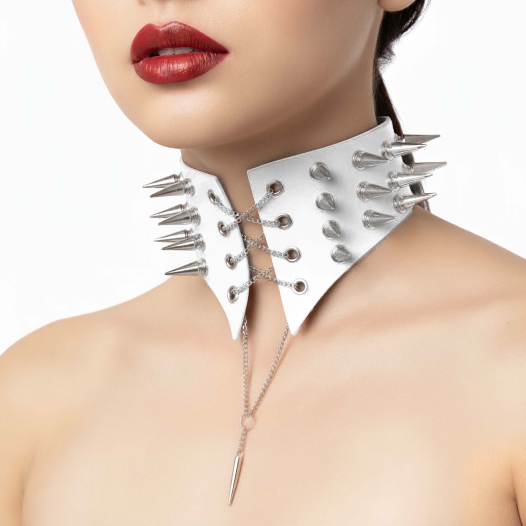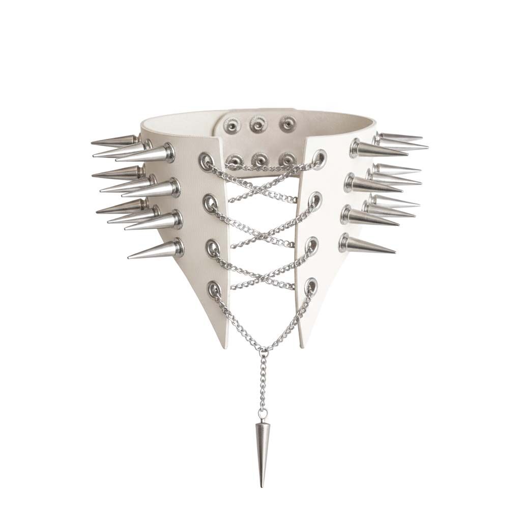 Чокер комір з шипами Art of Sex - Ariadne, натуральна шкіра, колір білий, XS-M