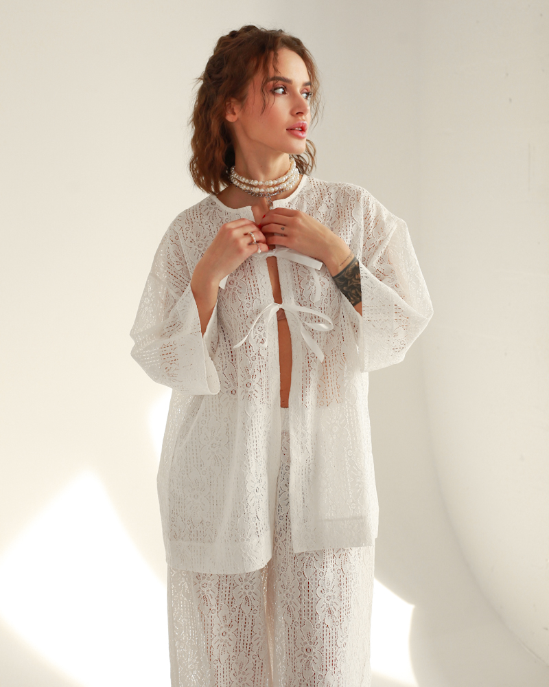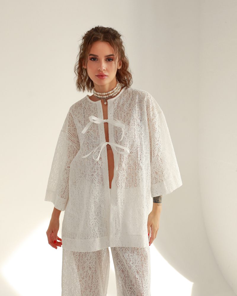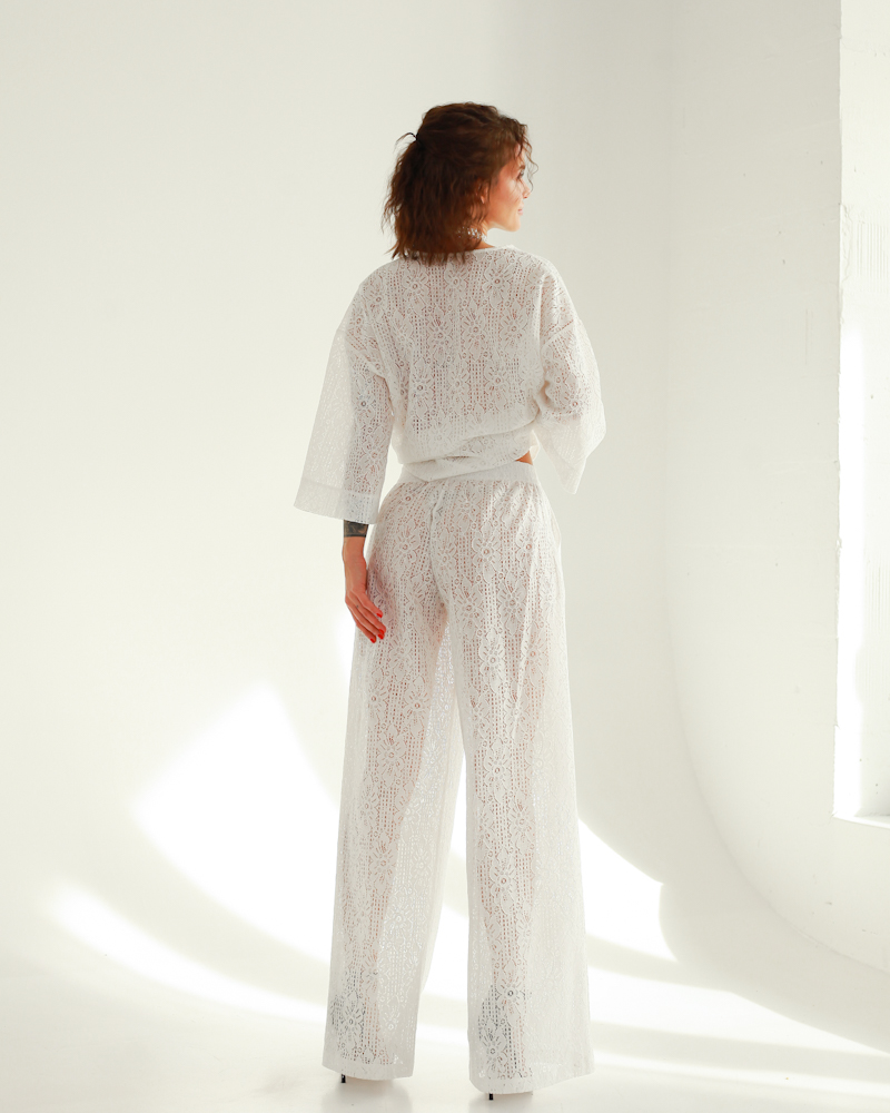 Домашній костюм "Elvina" тканина гіпюр Білий 4752 QC фото - Luxbikini