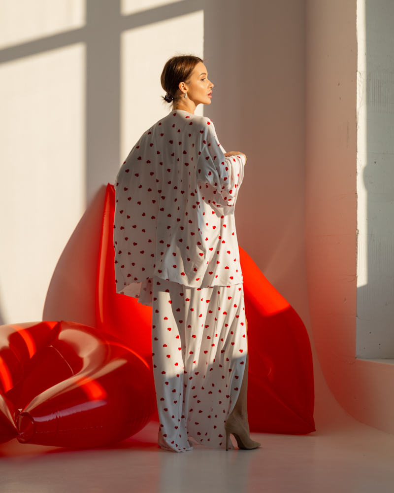 Домашній костюм "Afina" (халат+топ+штани) трикотаж двунитка Серця : Розмір - S (арт. 4701)