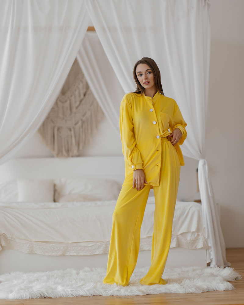 Комплект: Штани+Сорочка на ґудзиках. Класичні штани вільного крою із зав'язками на талії.
