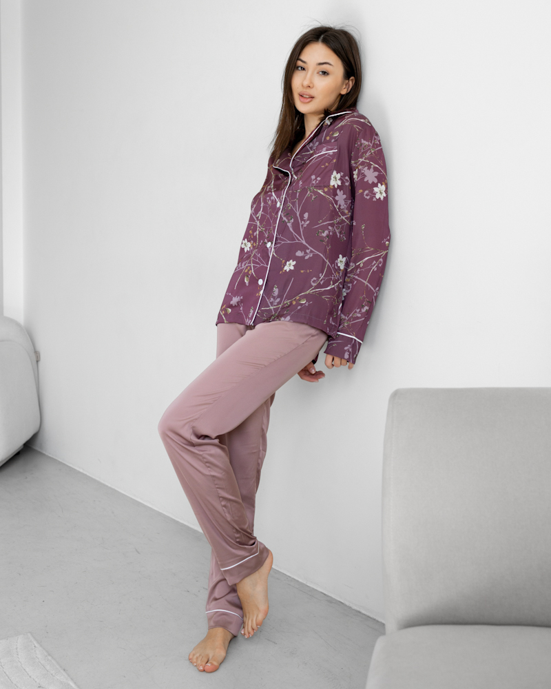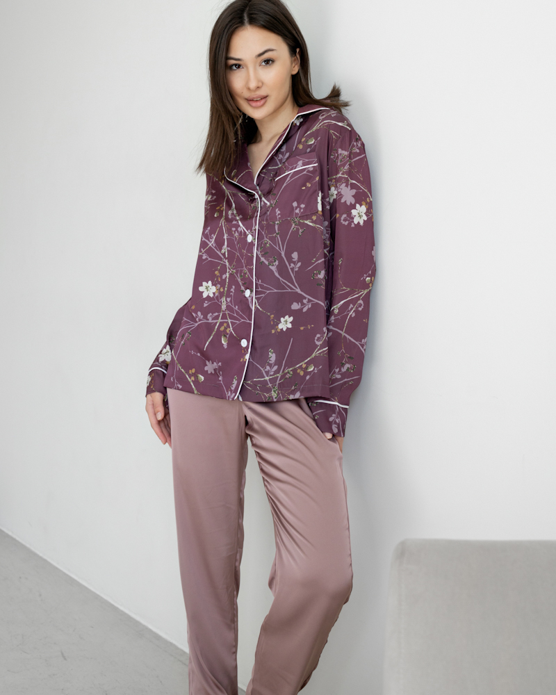Домашній костюм з шовку Carmen на ґудзиках Сливовий