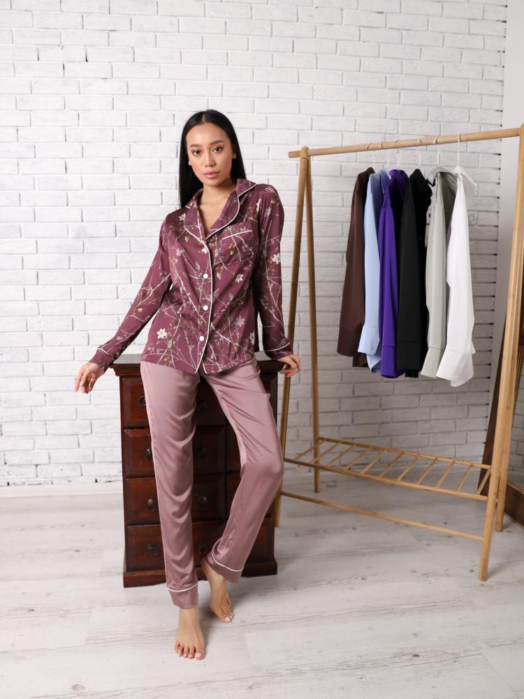 Домашній костюм з шовку Carmen на ґудзиках Сливовий 2231 QC фото - Luxbikini