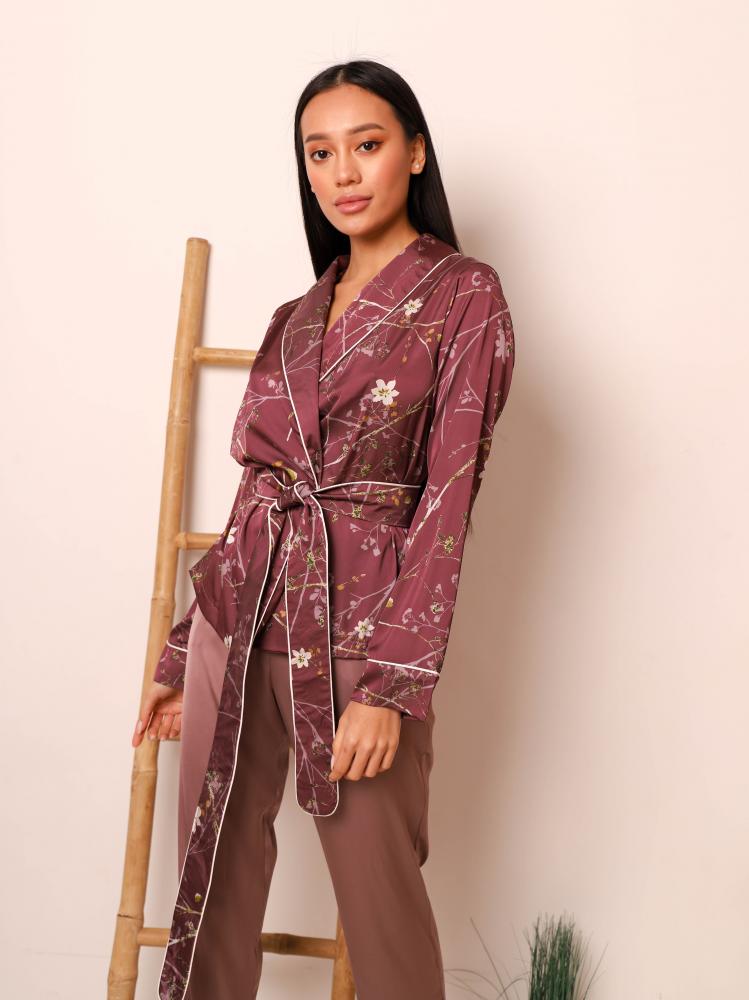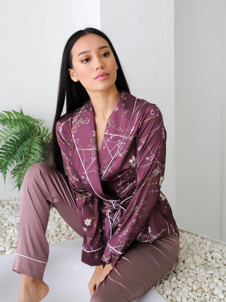 Домашній костюм з шовку Carmen Сливовий