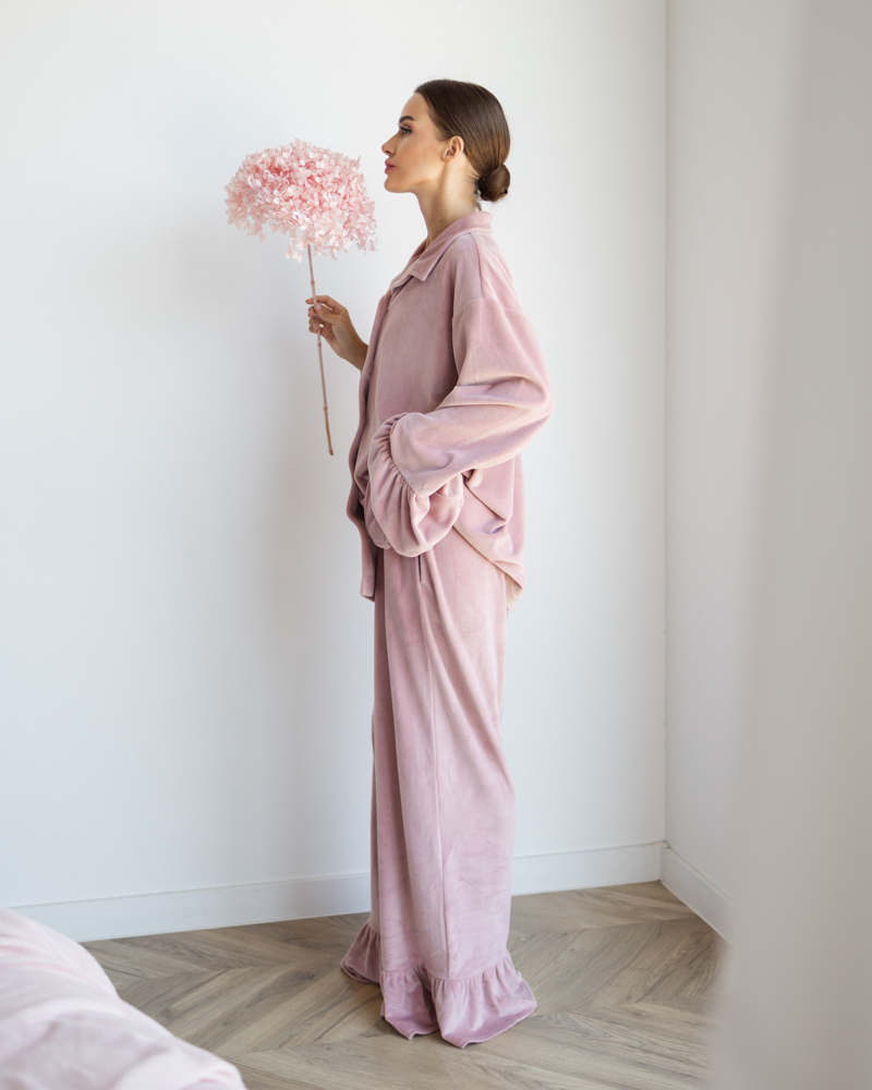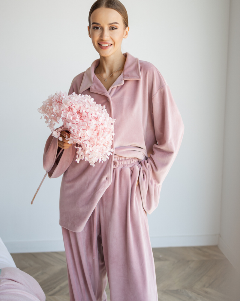 Неймовірно ніжний домашній костюм з королівського велюру на бавовяній основі.