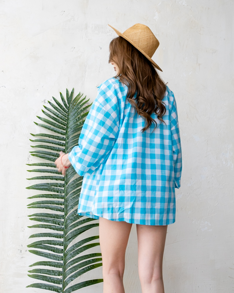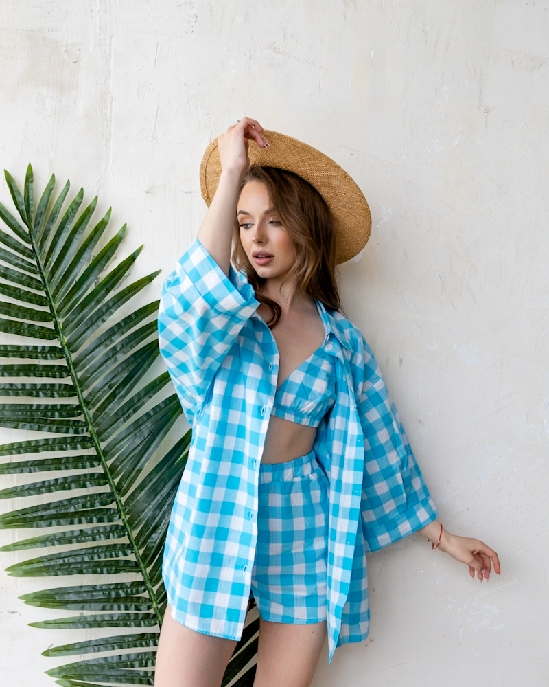 Літній жіночий костюм з натуральної бавовни в клітинку.
