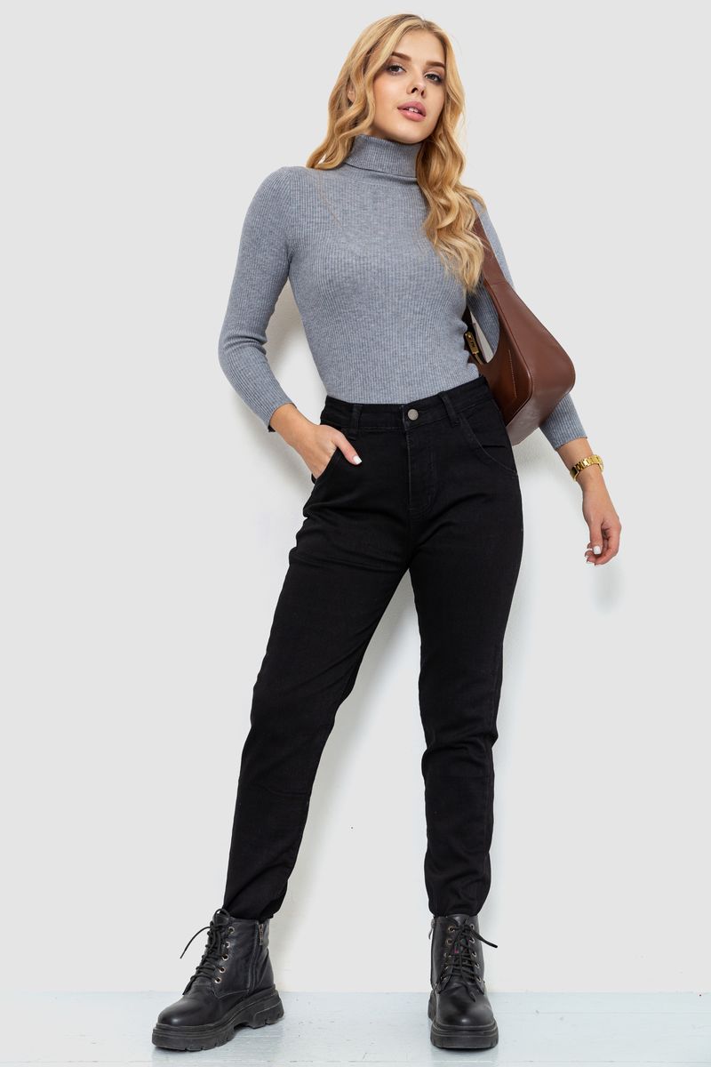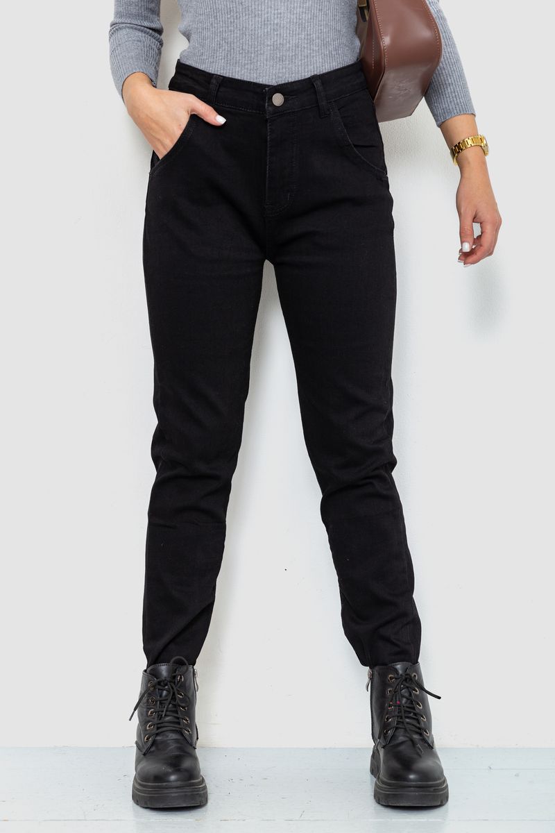 Джинси жіночі однотонні утеплені, колір чорний, 214R6026