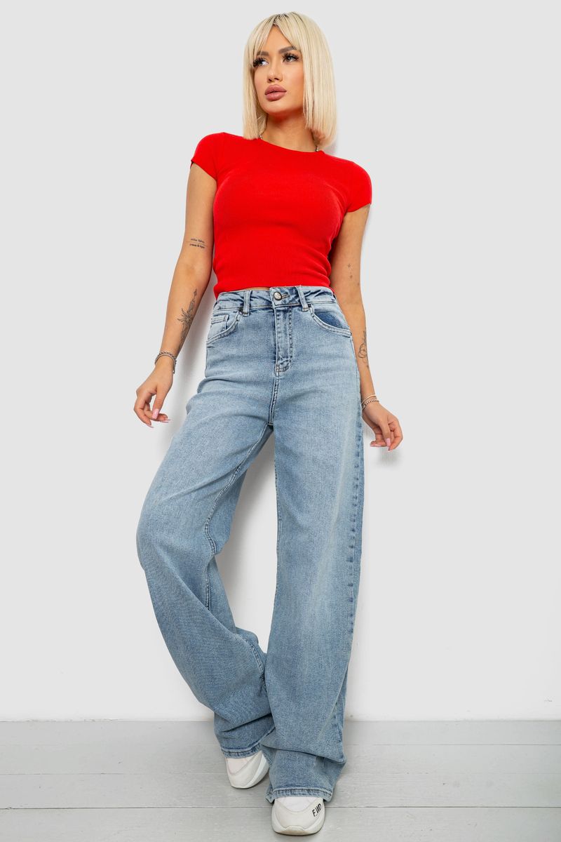 Джинси жіночі однотонні Wide leg, колір блакитний, 244R00198