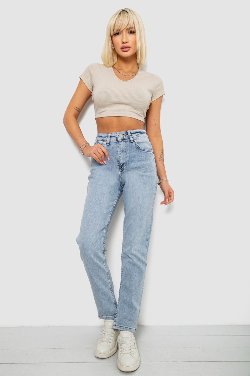 Джинси жіночі однотонні MOM, колір блакитний, 244R00590