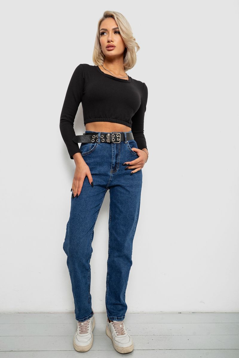Джинси жіночі однотонні MOM, колір синій, 244R001115