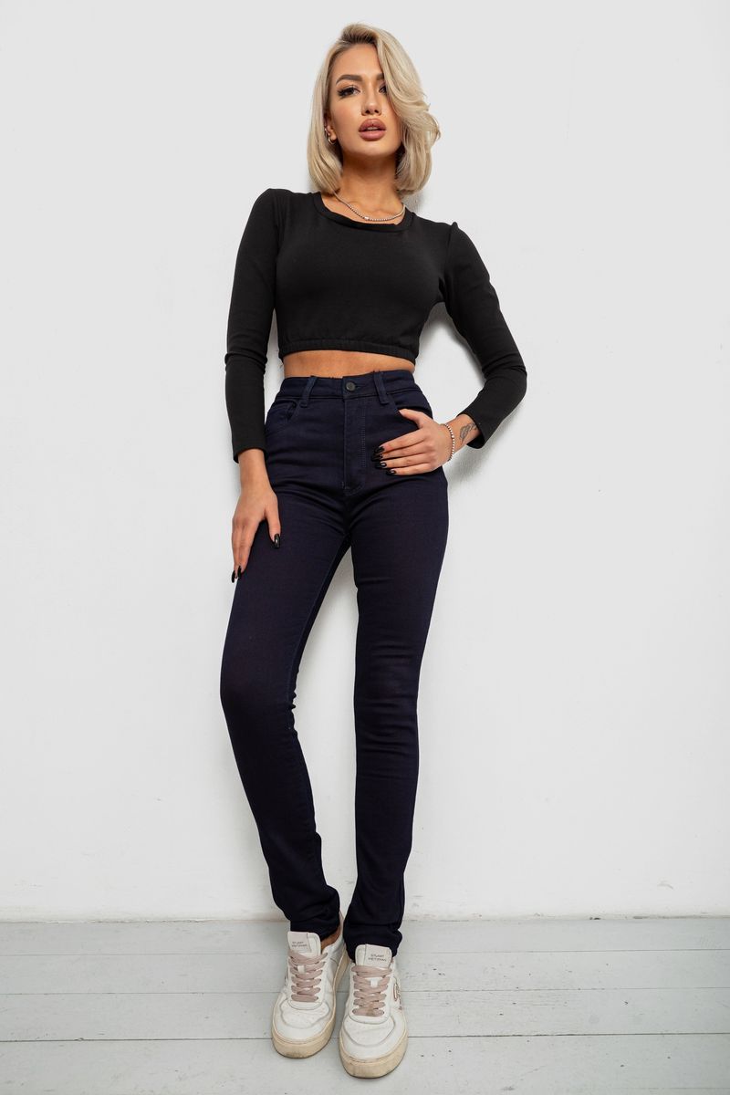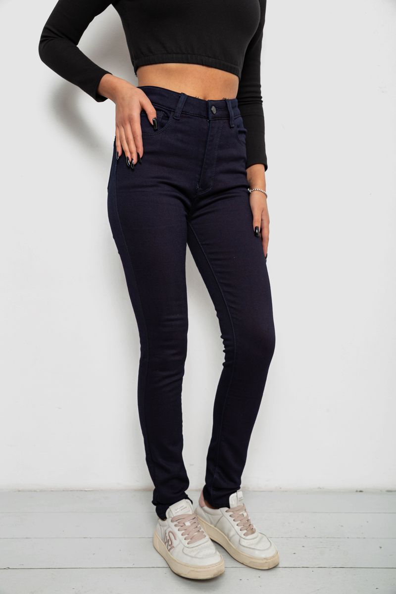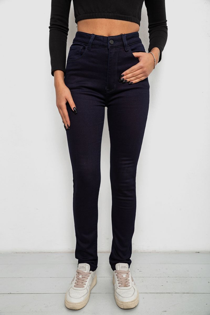 Джинси жіночі однотонні на флісі, колір темно-синій, 244RS021