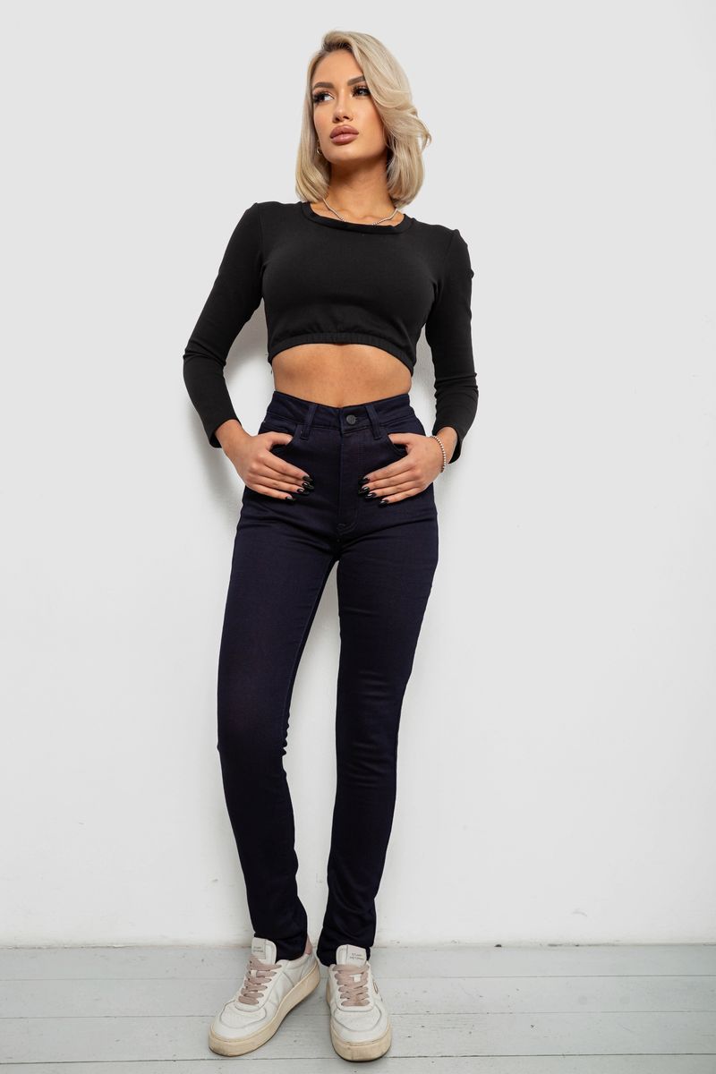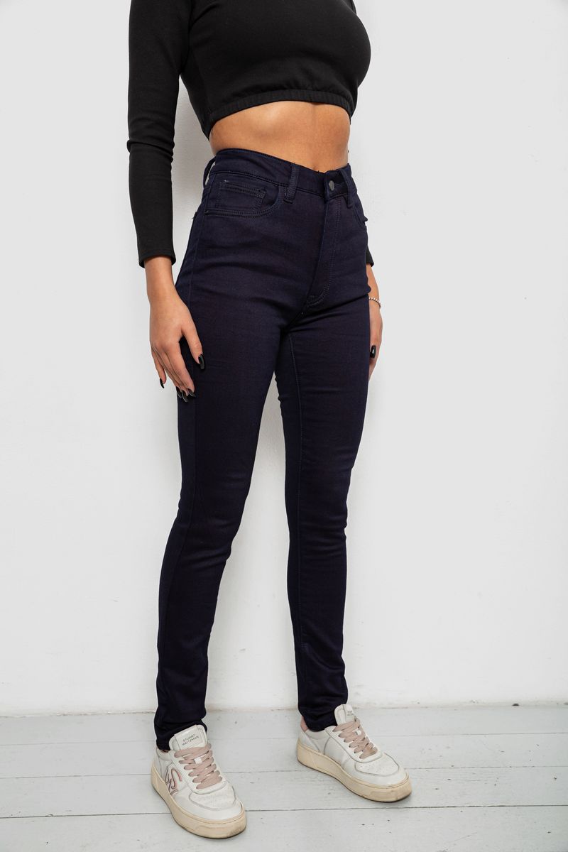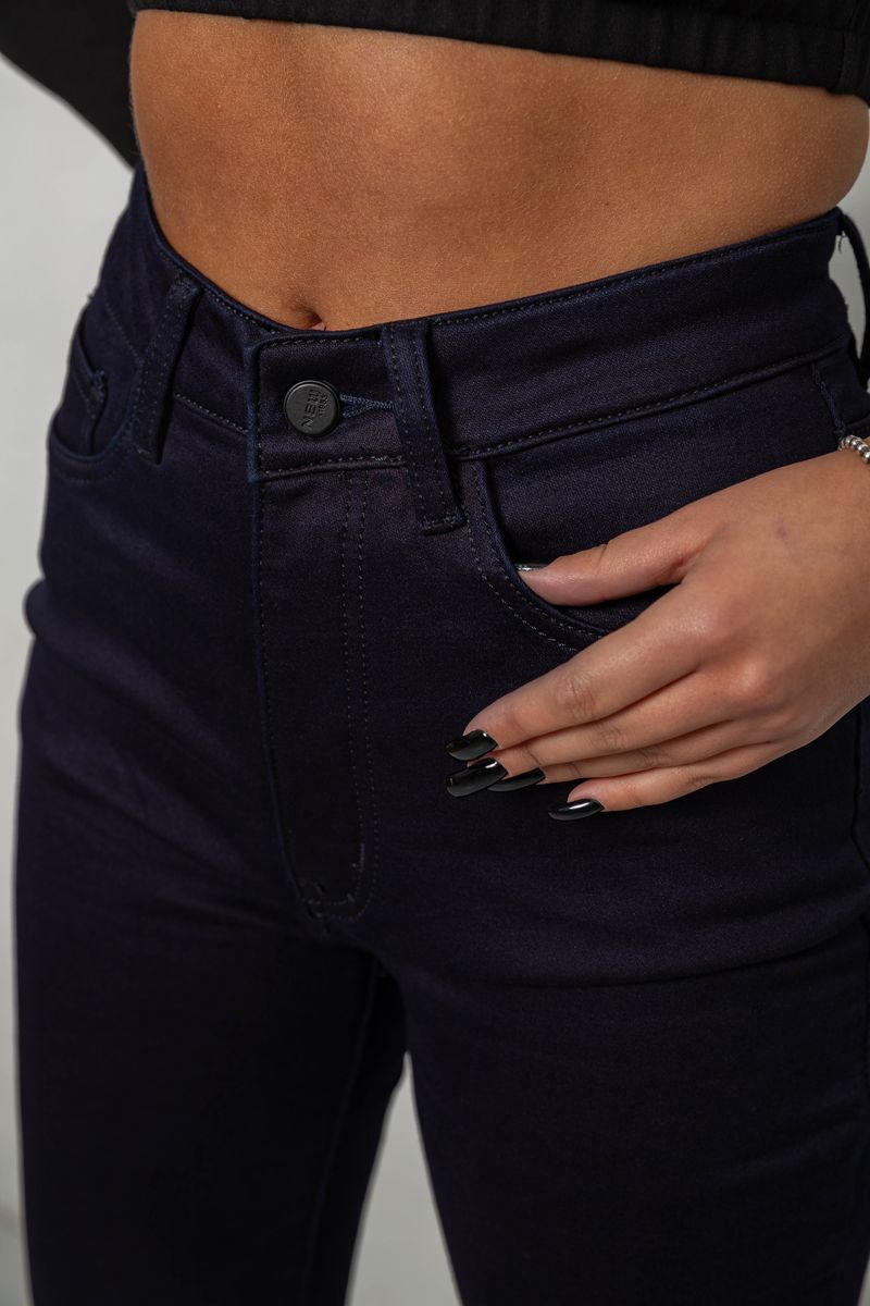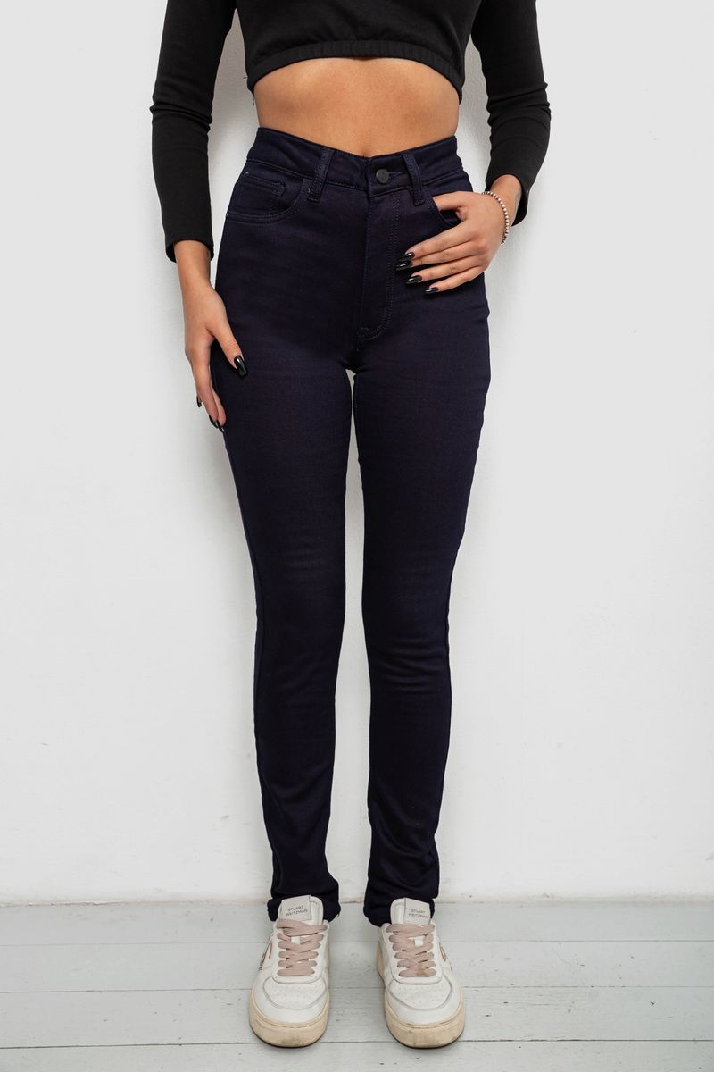 Джинси жіночі однотонні на флісі, колір темно-синій, 244RS026