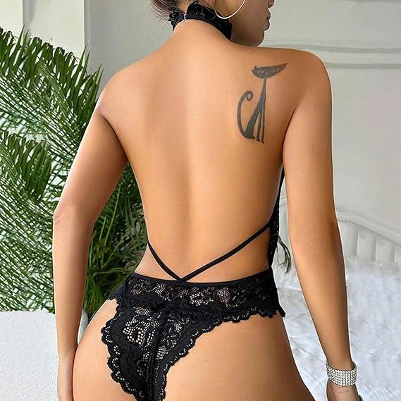 Звабливе мереживне боді з відкритим доступом та відкритою спиною Чорне S/M