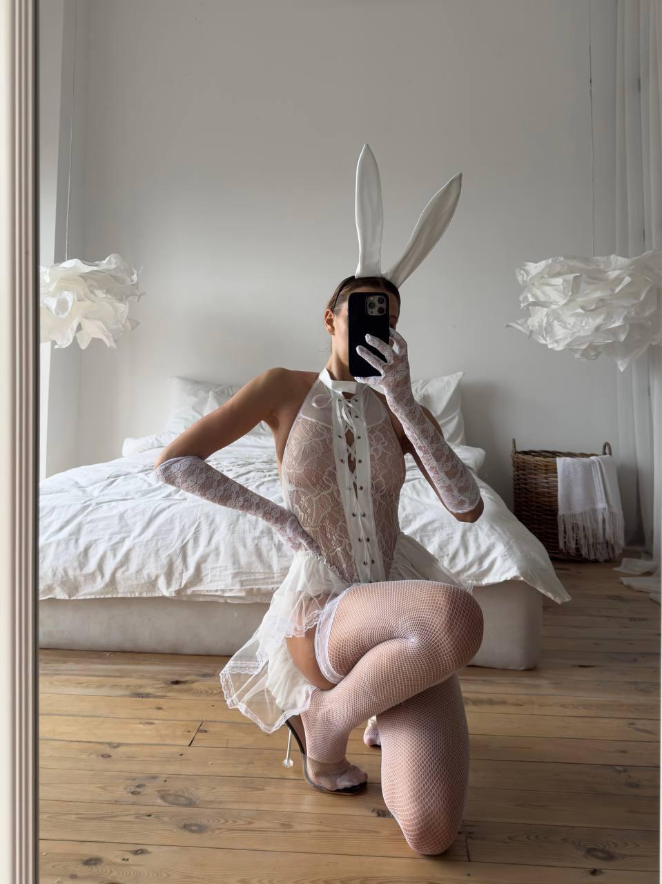 Білий еротичний комплект з вушками