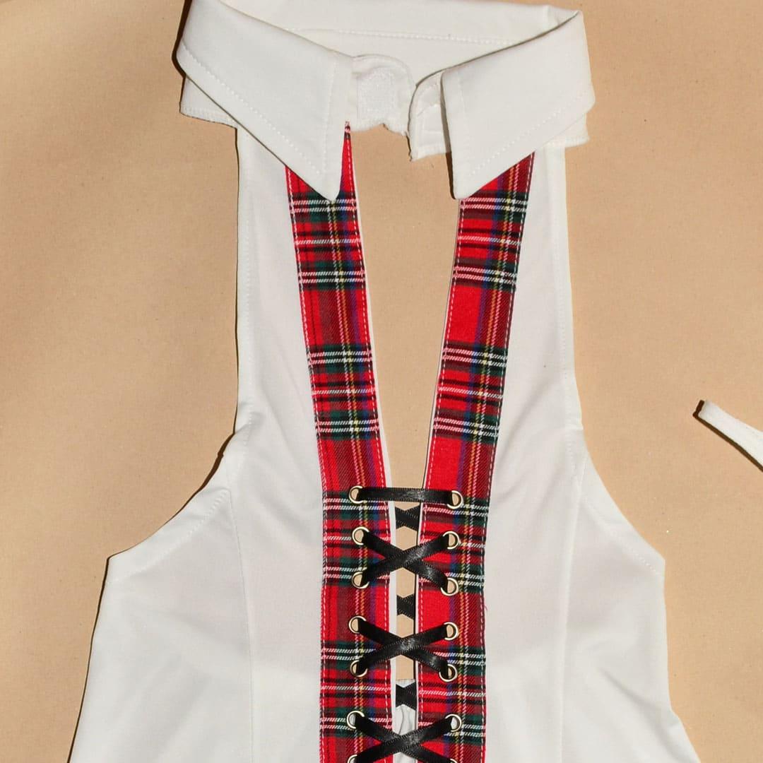 Костюм Школярки у клітинку для еротичних рольових ігор еластичний S/M Білий — це спокусливий костюм у клітинку, створений для втілення найсміливіших фантазій. Він ідеально підходить для інтимних ігор, забезпечуючи комфорт та незабутні враження.Технічні характеристики:Еластична тканина — еластичний костюм школярки ідеально облягає фігуру, підкреслюючи її переваги.Приємний до тіла матеріал — не викликає подразнень та дискомфорту.Відмінна повітропроникність — забезпечує комфорт під час активних рухів, що важливо для костюма для еротичних ігор.Вишуканий дизайн та стиль:Коротке плаття з білим верхом та червоною картатою спідницею — створює яскравий та незабутній образ.Вертикальний виріз по центру з картатими вставками та металевими люверсами — додає образу пікантності.Шнурівка тонкою чорною атласною стрічкою — дозволяє регулювати глибину вирізу, акцентуючи декольте.Напіввідкрита спина — додає сексуальності та привабливості, роблячи цей костюм школярки еластичний S/M ще більш звабливим.Комфорт та функціональність:Верх з американським відкладним коміром на липучці — забезпечує зручність у використанні.Еластичний пояс спідниці — гарантує комфортну посадку та свободу рухів.Універсальний розмір S/M — дозволяє ідеально підібрати білий костюм школярки у клітинку S/M для більшості фігур. Цей комплект еластичний S/M створений для максимального задоволення.Особливості образу:Спідниця фасону напівсонце з білим нижнім краєм — надає грайливого та кокетливого вигляду.Продуманість кожної деталі — сприяє створенню максимального ефекту, що робить цей костюм для рольових ігор особливим.Легкість у догляді — цей еластичний костюм школярки для ігор легко переться та швидко сохне.Комплектація: Плаття.Догляд: Рекомендовано ручне прання у прохолодній воді.