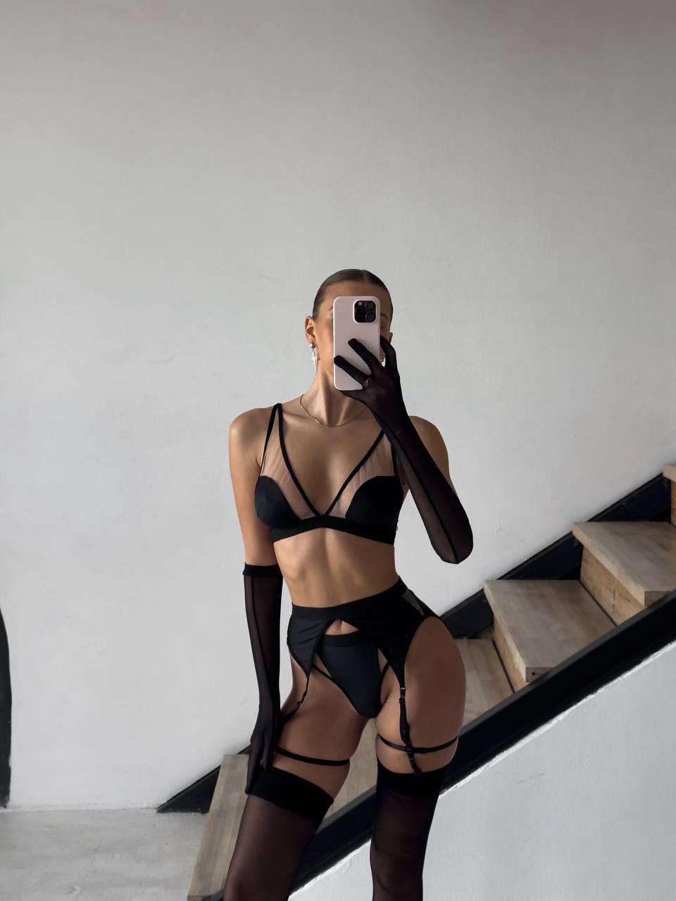 Еротичний комплект з сіточкою, гартери, пояс у комплекті