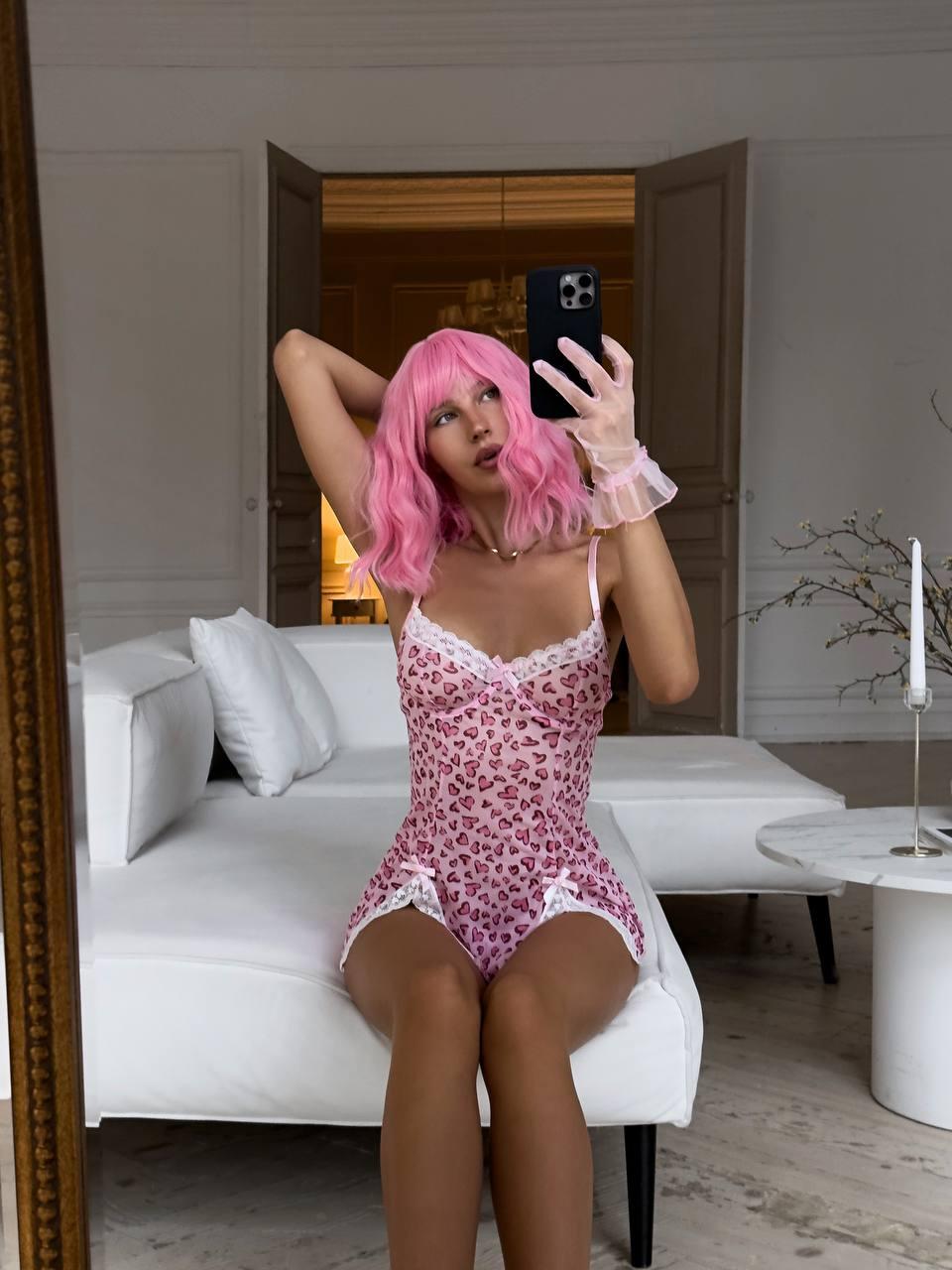 Рожевий пеньюар у сердечко DO3832