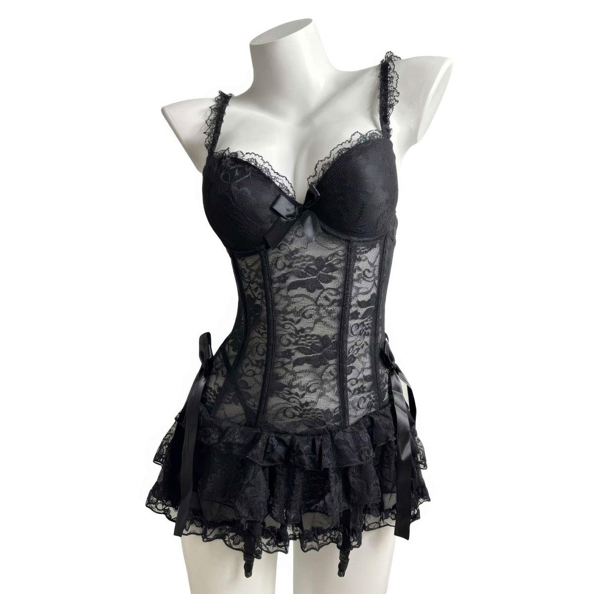 Еротичний комплект пеньюар та стрінги жіночі мереживні з прозорою сіткою XS/S Чорний — це вишуканий еротичний комплект, що створює неповторний та спокусливий образ для особливих моментів. Він ідеально підкреслює жіночність та витонченість.Технічні характеристики:Тип виробу: Комплект еротичної білизни — забезпечує цілісний та гармонійний образ.Склад комплекту: Пеньюар (бейбі-дол) та трусики-стрінги — пропонує повноцінний еротичний комплект пеньюар стрінги.Розмір: XS/S (універсальний) — гарантує комфортну посадку для різних типів фігур.Колір: Чорний — додає елегантності та загадковості, підкреслюючи привабливість.Матеріал: Синтетична сітка (фатин) — забезпечує легкість та приємні тактильні відчуття.Витончений дизайн:Матеріал: Мереживо — надає виробу особливої чуттєвості та шарму.Силует пеньюара: А-подібний — витончено спадає, візуально подовжуючи фігуру.Довжина пеньюара: Міні — дозволяє максимально підкреслити привабливість ніг.Фактура: Дрібна прозора сітка (mesh) — створює ефект легкості та звабливості.Комфорт та деталі:Чашки: М'які, трикутної форми, без кісточок — дарують природну підтримку та свободу рухів.Візерунок на чашках: Мереживо з квітковим принтом — додає романтичності, створюючи ніжний акцент.Бретелі: Тонкі, еластичні, з X-подібною спинкою — забезпечують надійну фіксацію та привабливий вигляд.Регулювання: Регульовані по довжині бретелі — дозволяють індивідуально налаштувати посадку.Завершений образ:Декор: Атласний бантик між чашками — додає ніжного акценту та витонченості.Модель трусиків: Стрінги (G-string) — забезпечує мінімальне покриття, акцентуючи увагу на формах.Посадка трусиків: Низька — ідеально доповнює жіночий пеньюар, не обмежуючи рухів.Обробка краю: Хвилястий край подолу — створює м'який, естетично привабливий контур.Комплектація: Комплект складається з елегантного пеньюара та спокусливих трусиків-стрінгів, створюючи гармонійний образ.Догляд: Рекомендується ручне прання в холодній воді для збереження форми та якості матеріалів.