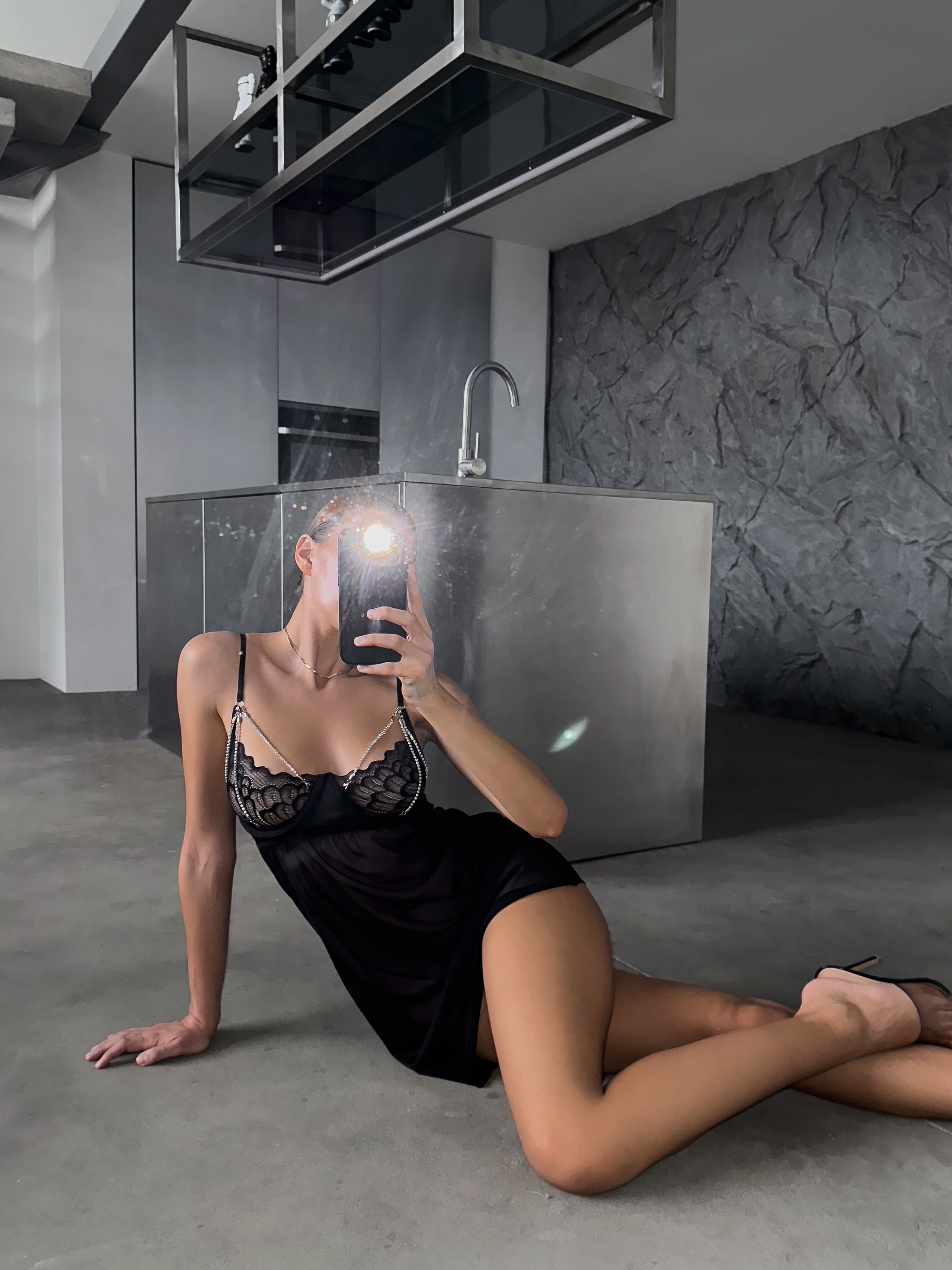 Мереживний пеньюар з блискучими елементами