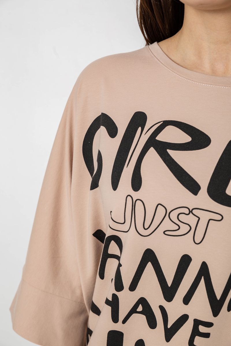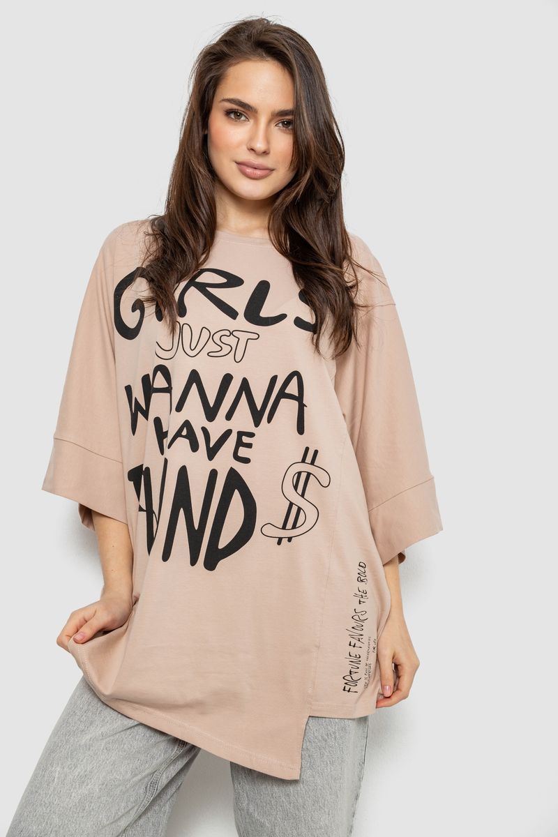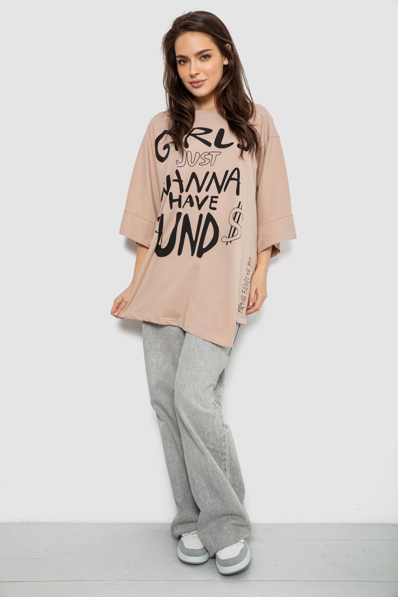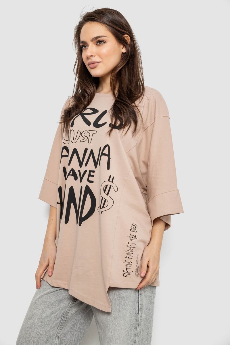 Футболка жіноча з принтом, колір бежевий, 244R4017