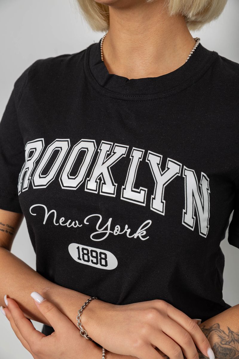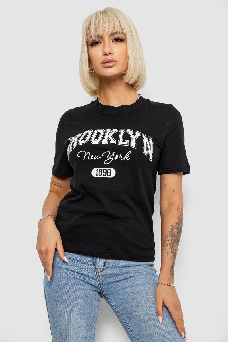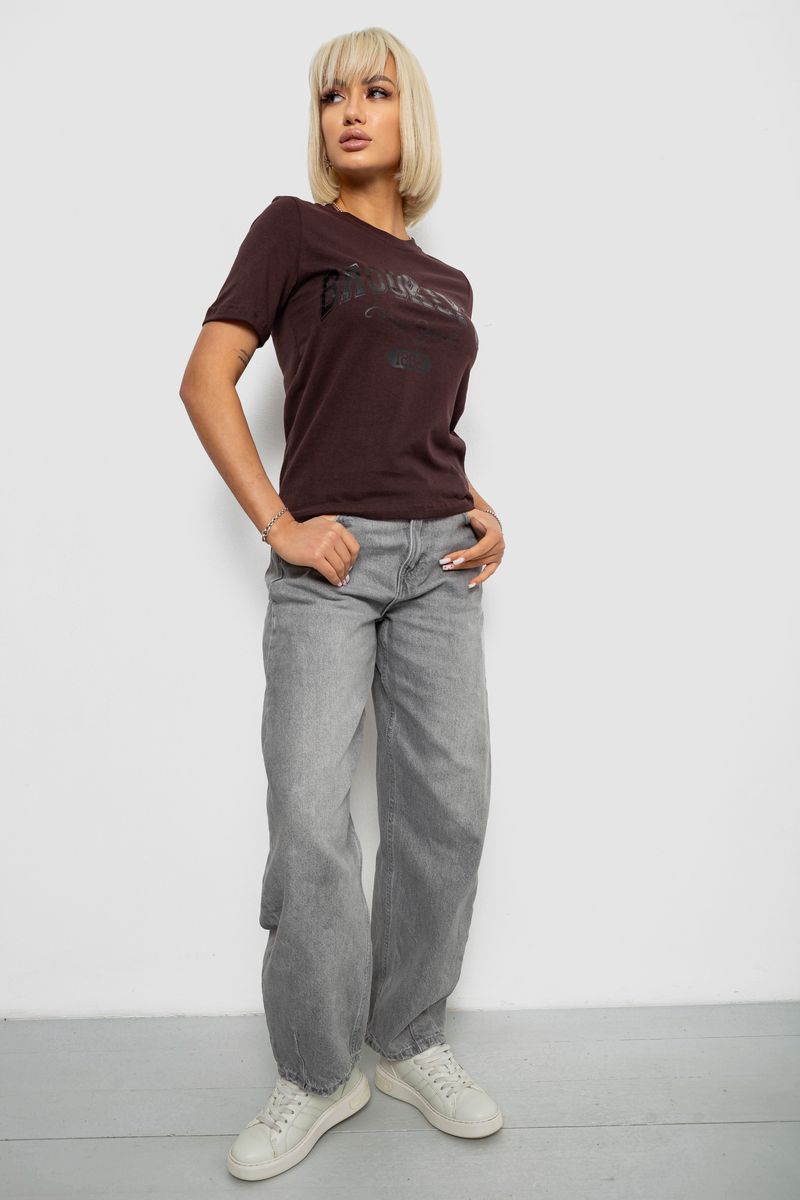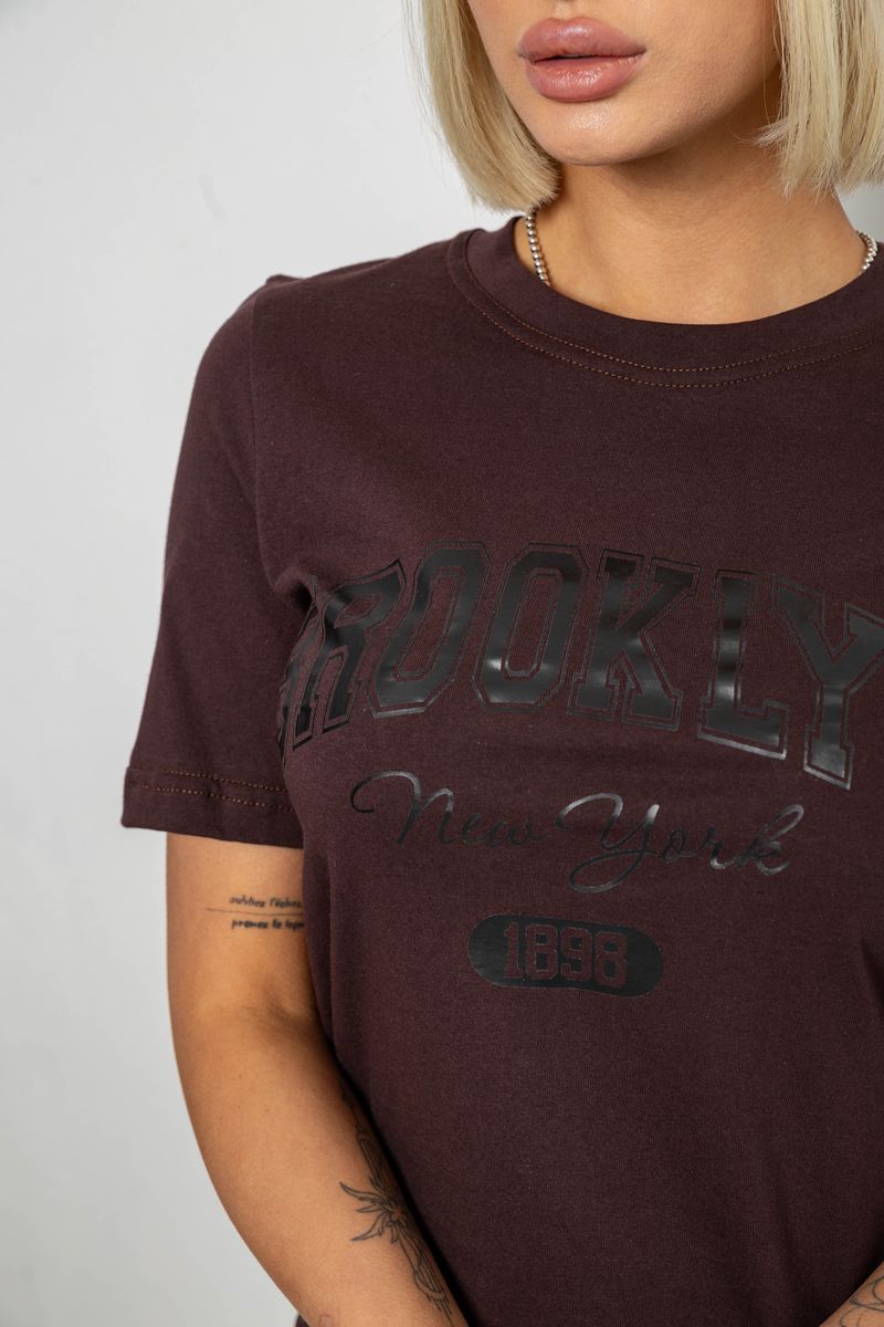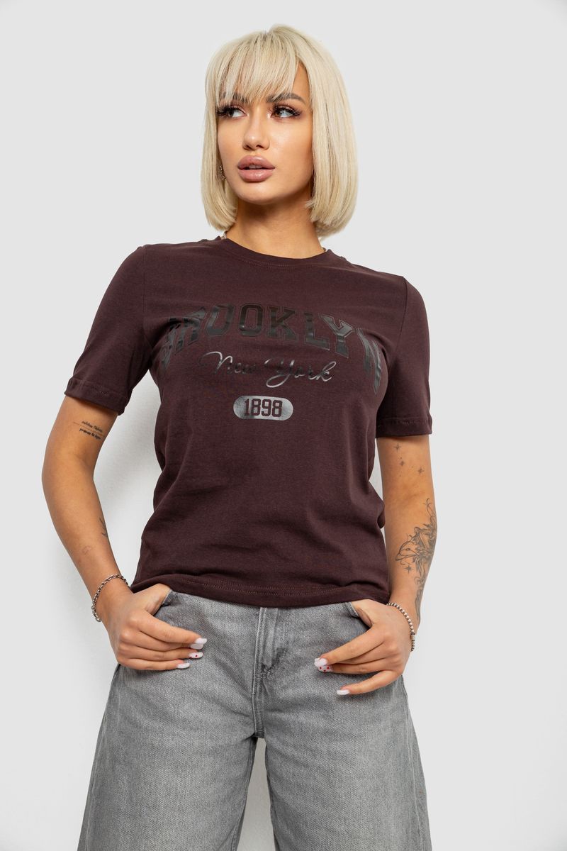 Жіноча футболка з принтом, колір шоколадний, 241R137