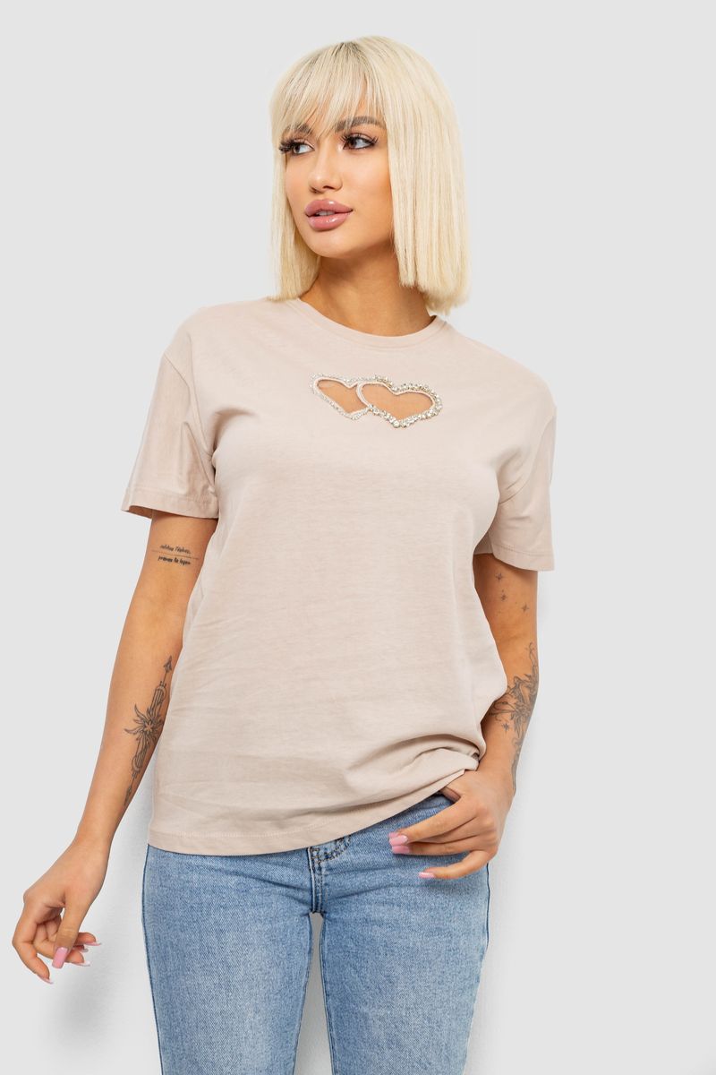 Футболка жіноча з принтом, колір бежевий, 244R2802