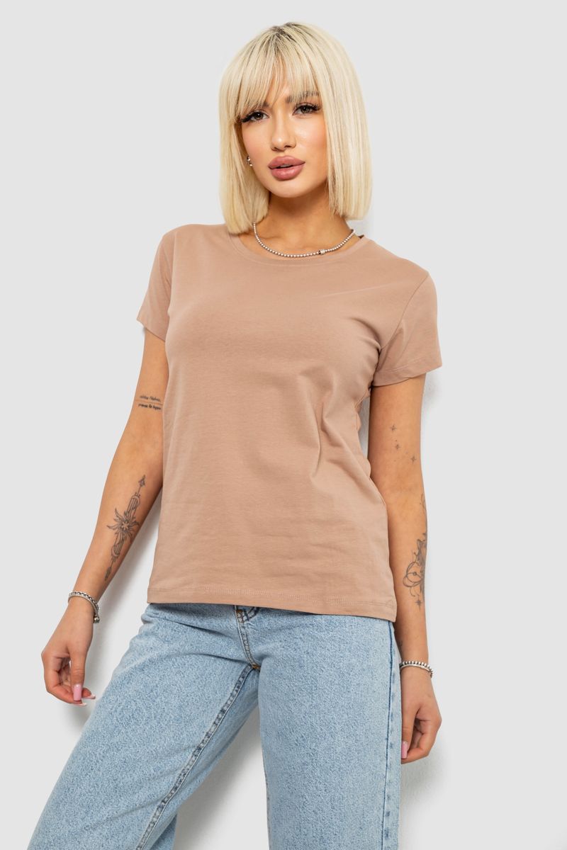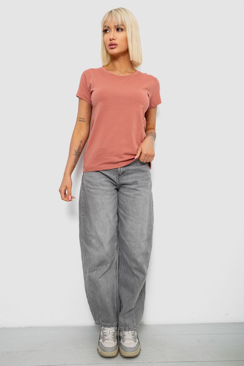 Футболка жіноча однотонна, колір пудровий, 244R2806 : Колір - Пудровий, Розмір - M (арт. 244R2806)