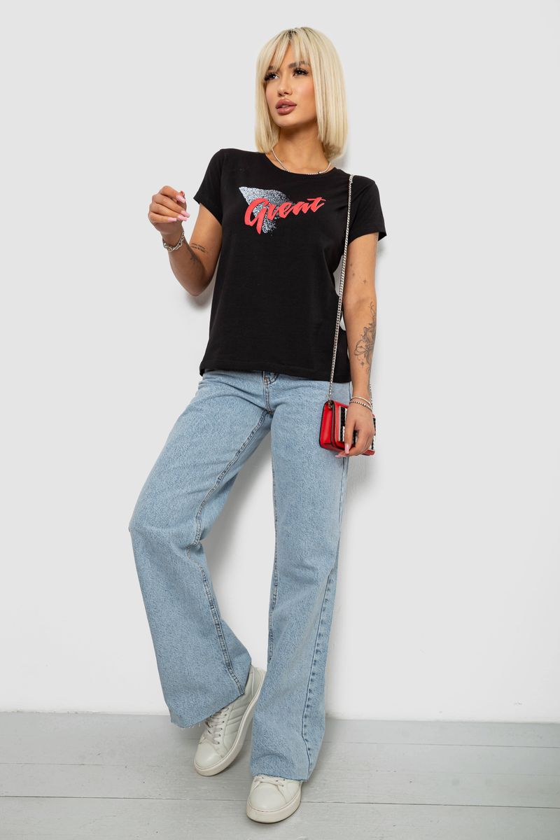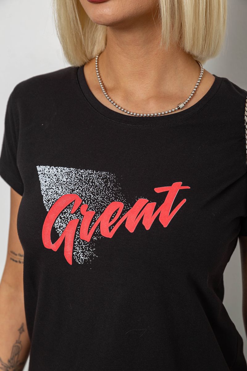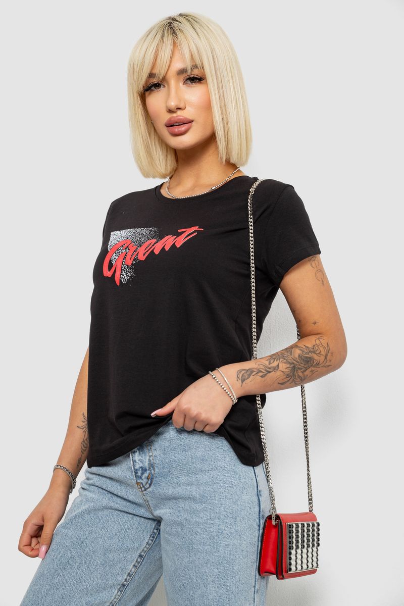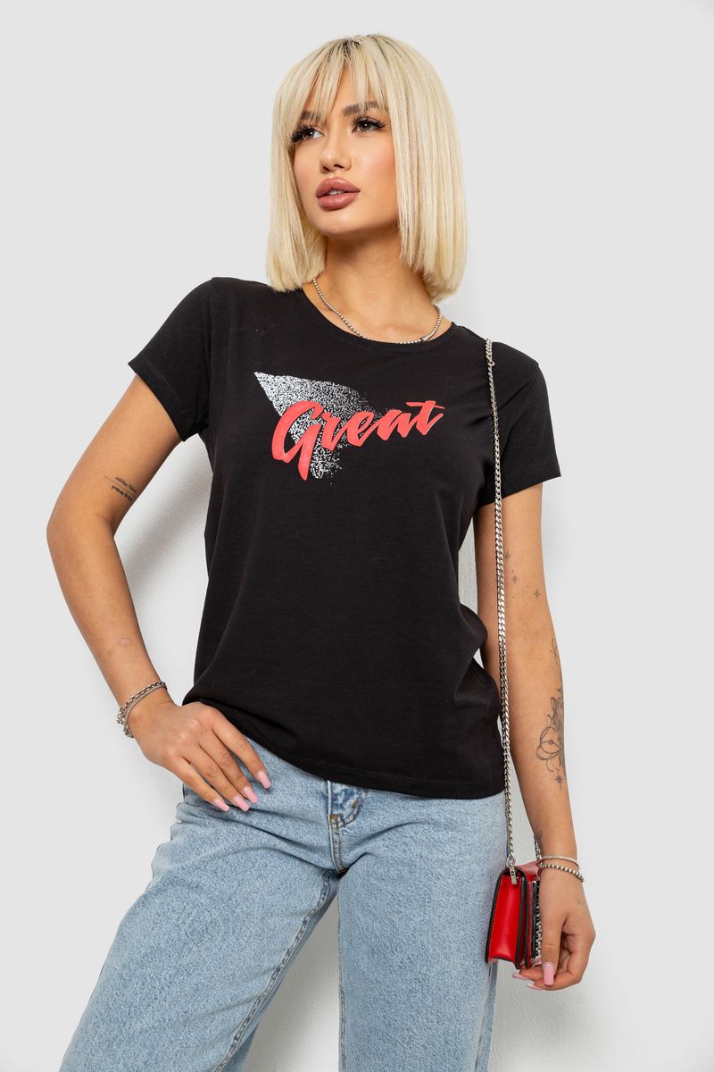 Футболка жіноча з принтом, колір чорний, 244R2234 : Колір - Чорний, Розмір - M (арт. 244R2234)