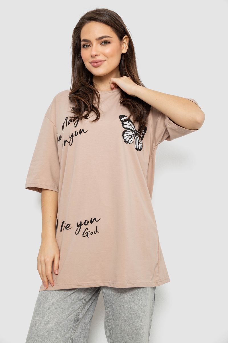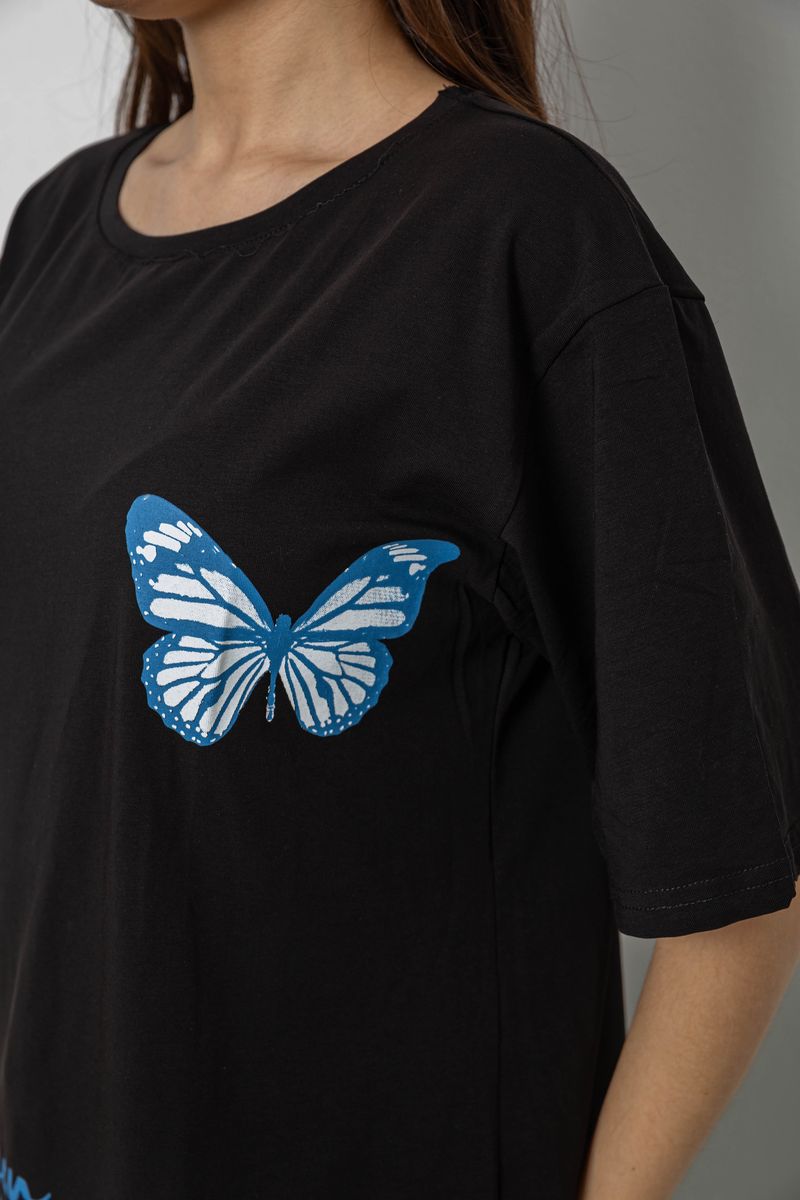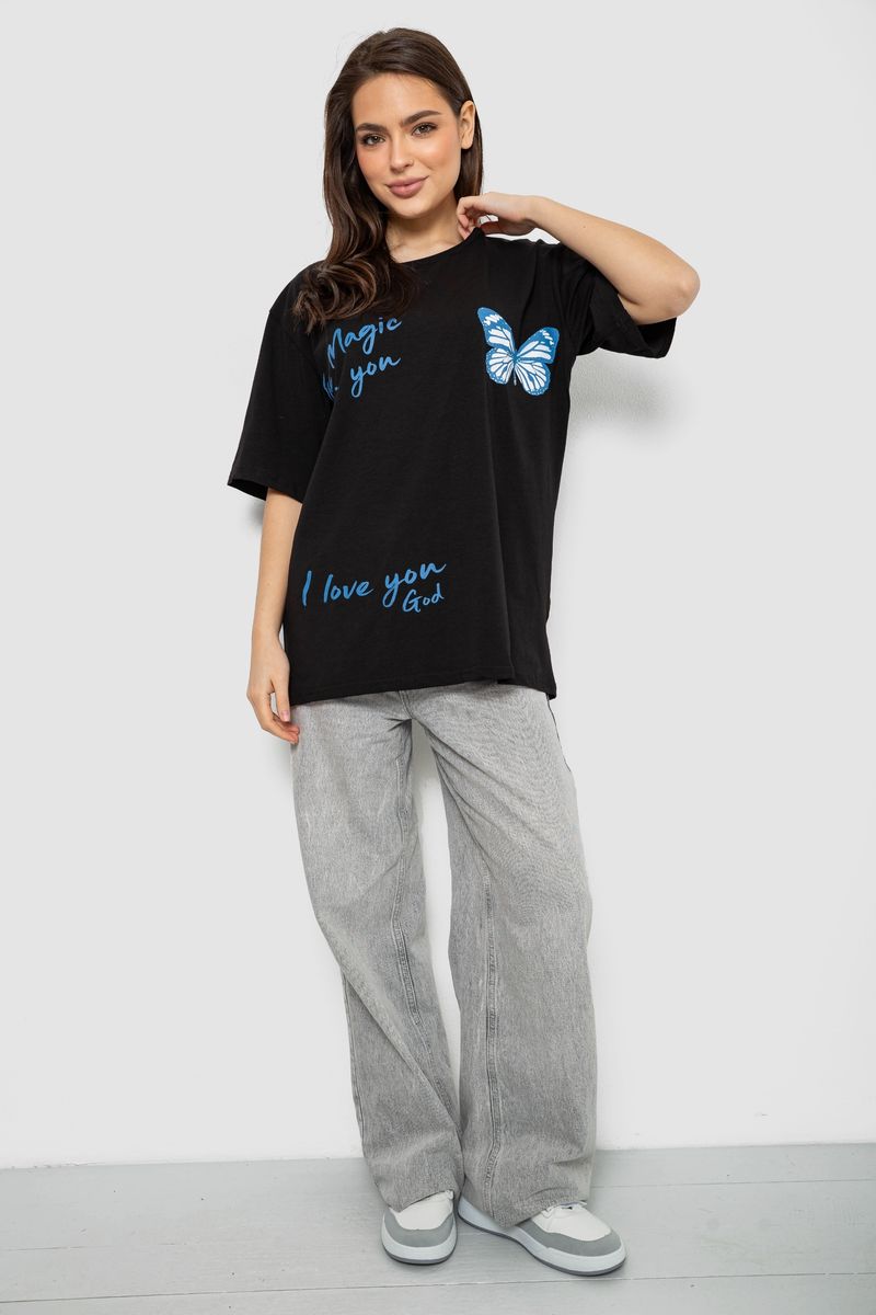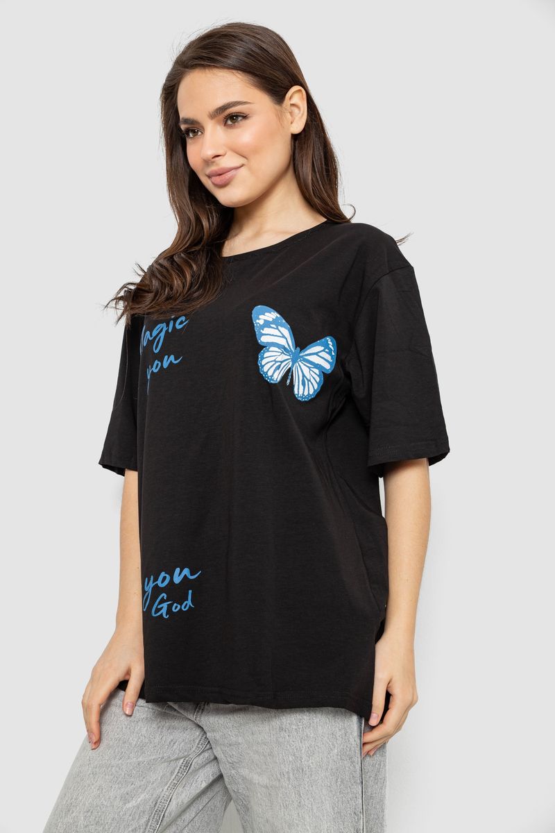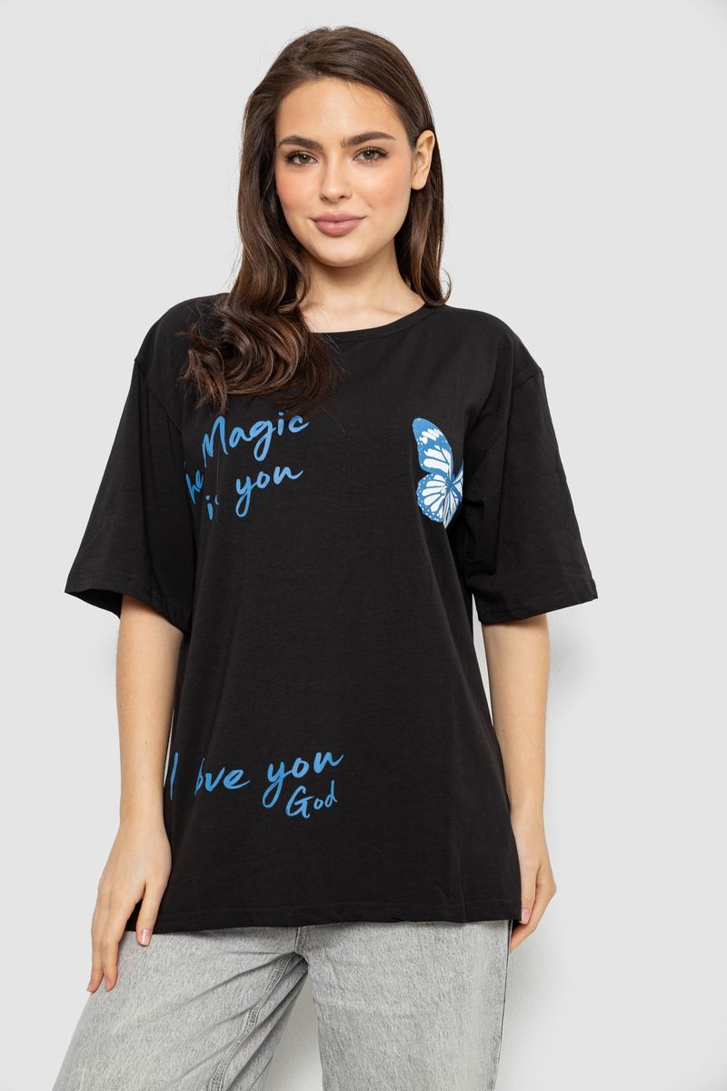 Футболка жіноча з принтом, колір чорний, 244R3006 : Колір - Чорний, Розмір - XXL (арт. 244R3006)
