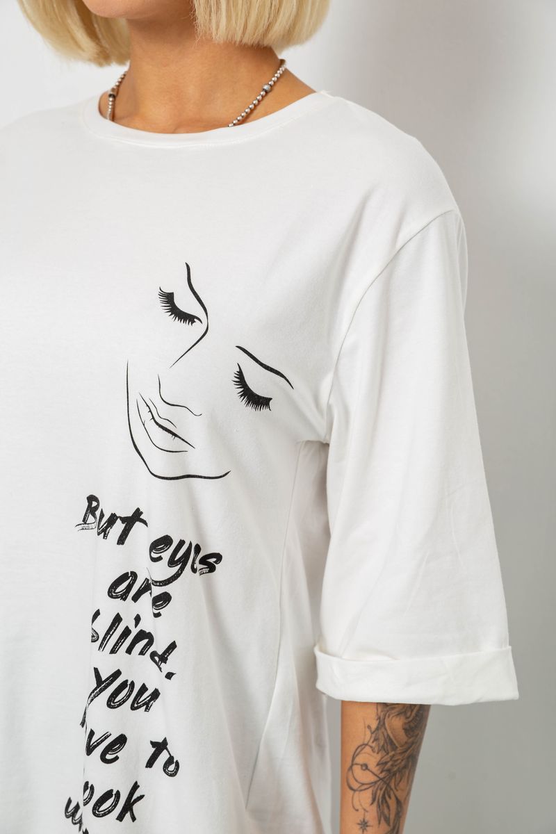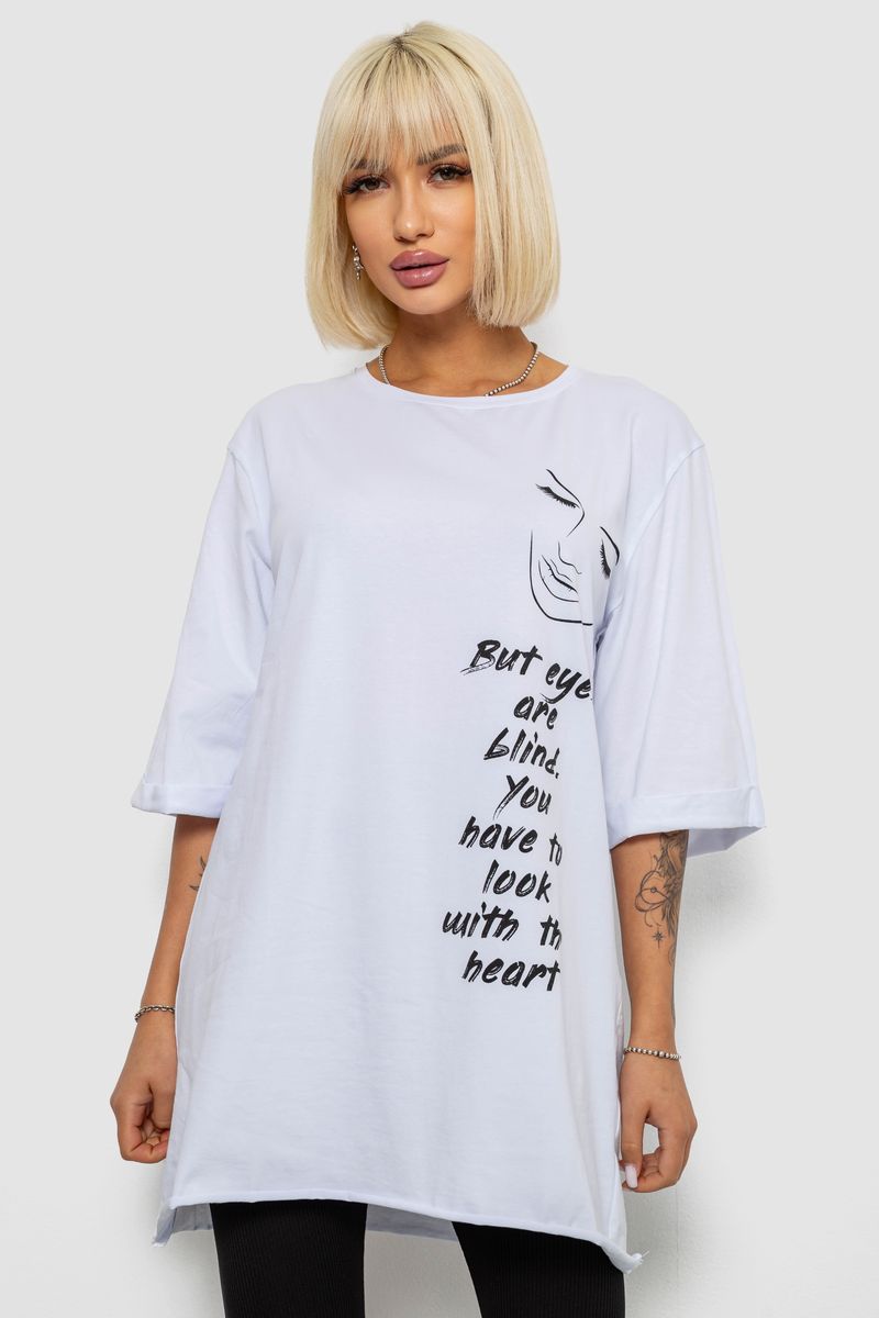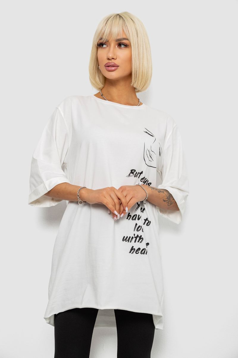 Футболка жіноча з принтом, колір білий, 244R2008 : Колір - Білий, Розмір - L (арт. 244R2008)