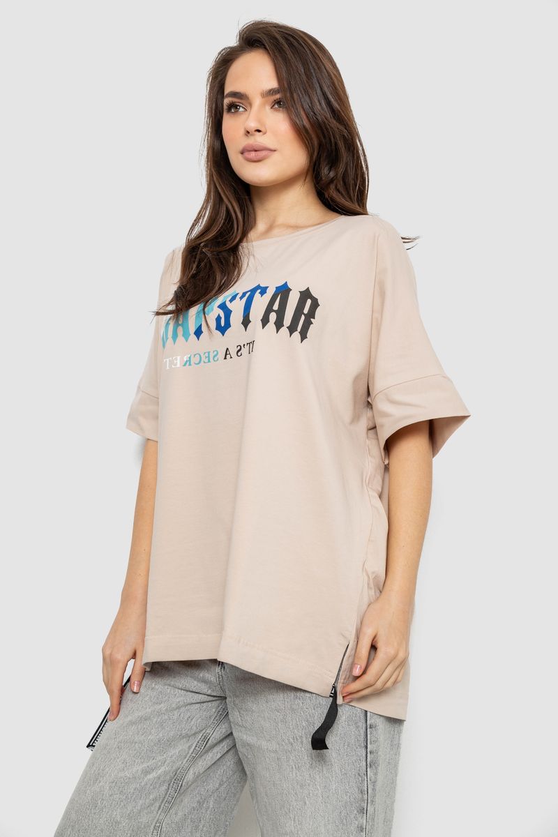 Футболка жіноча з принтом, колір бежевий, 244R4012 244R4012 AGER фото - Luxbikini