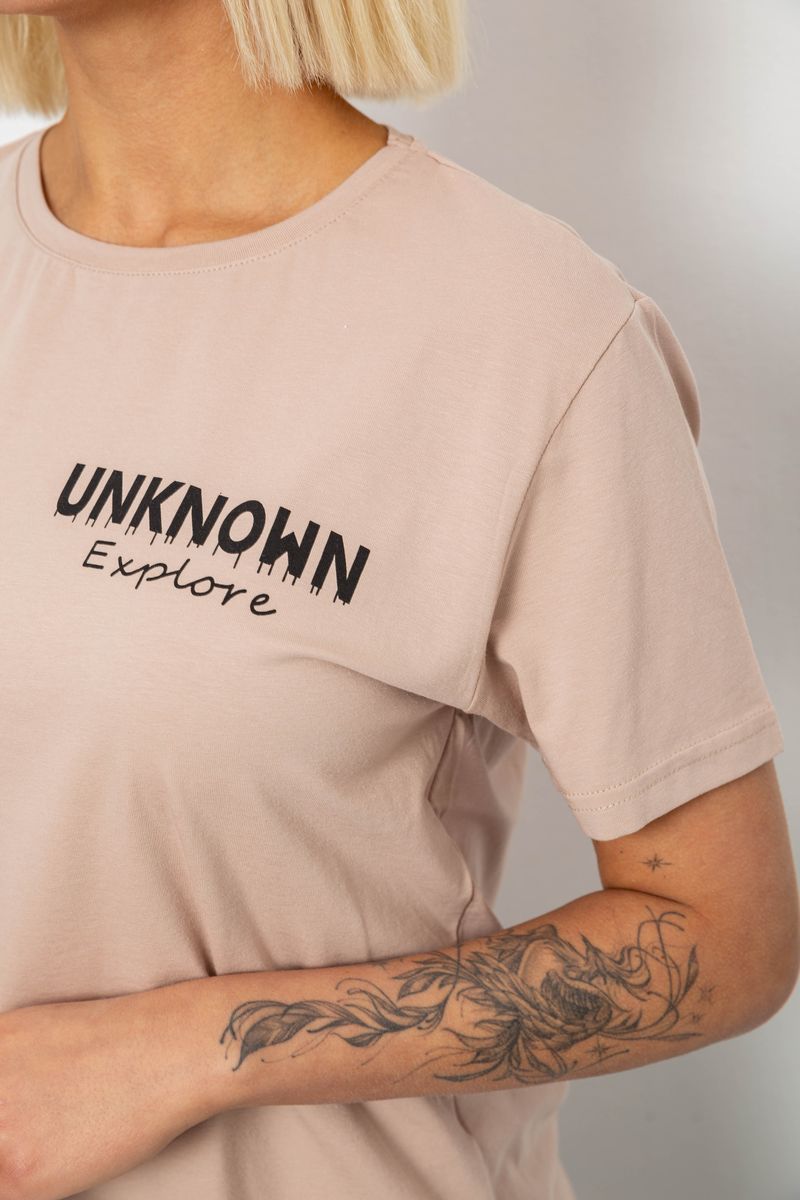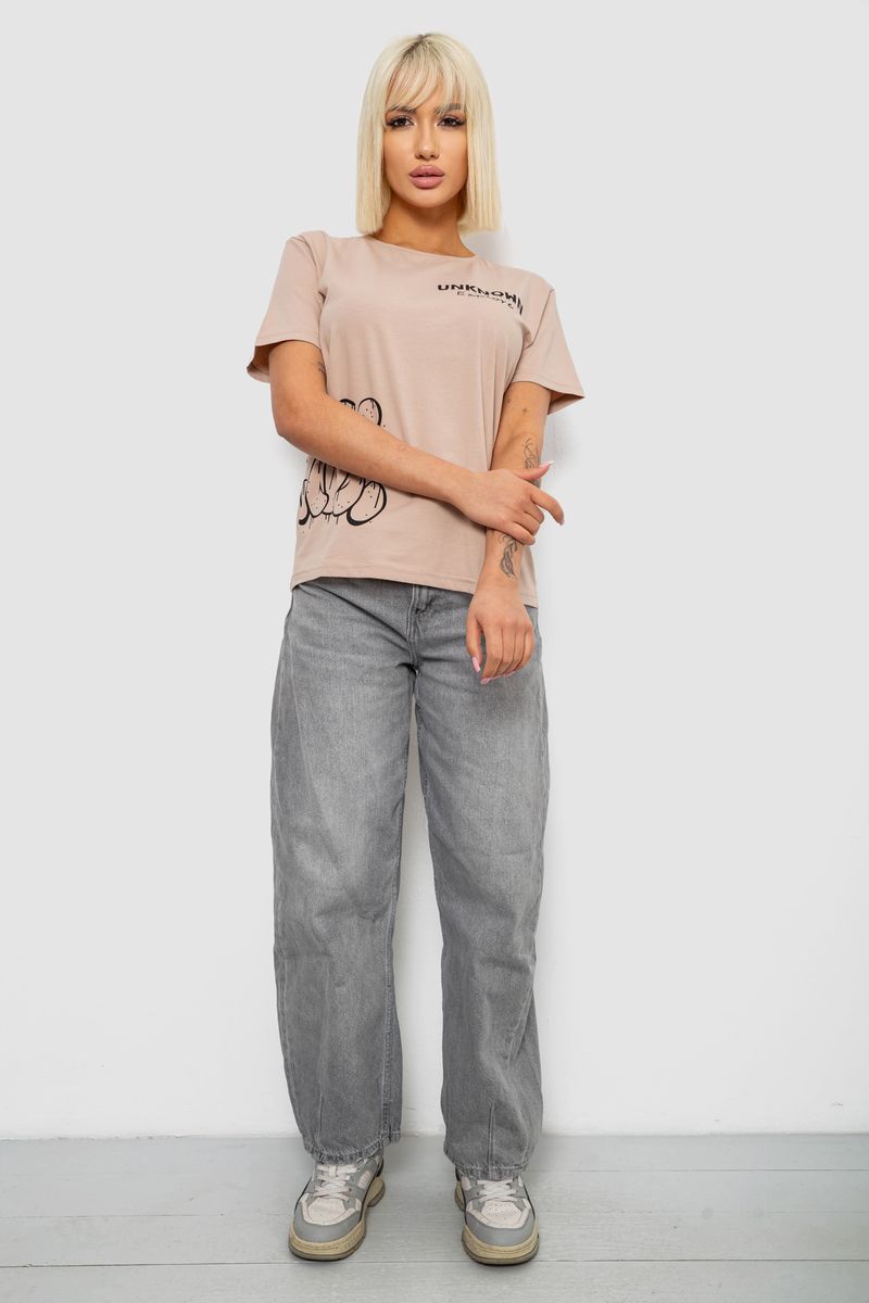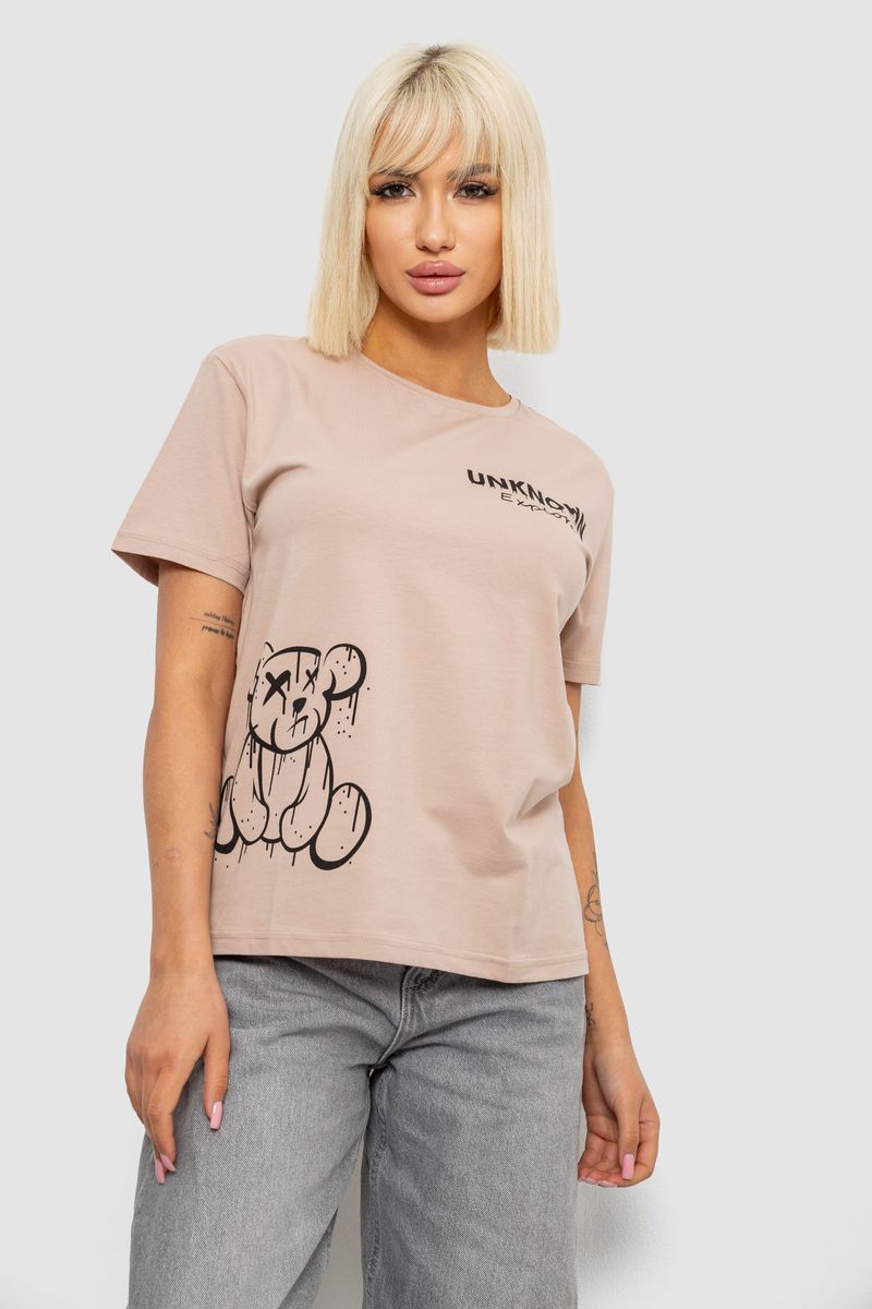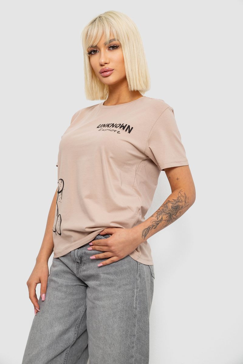 Футболка жіноча з принтом, колір бежевий, 244R2001-5 : Колір - Бежевий, Розмір - L (арт. 244R2001-5)