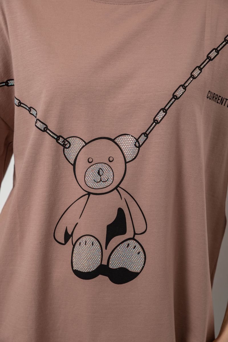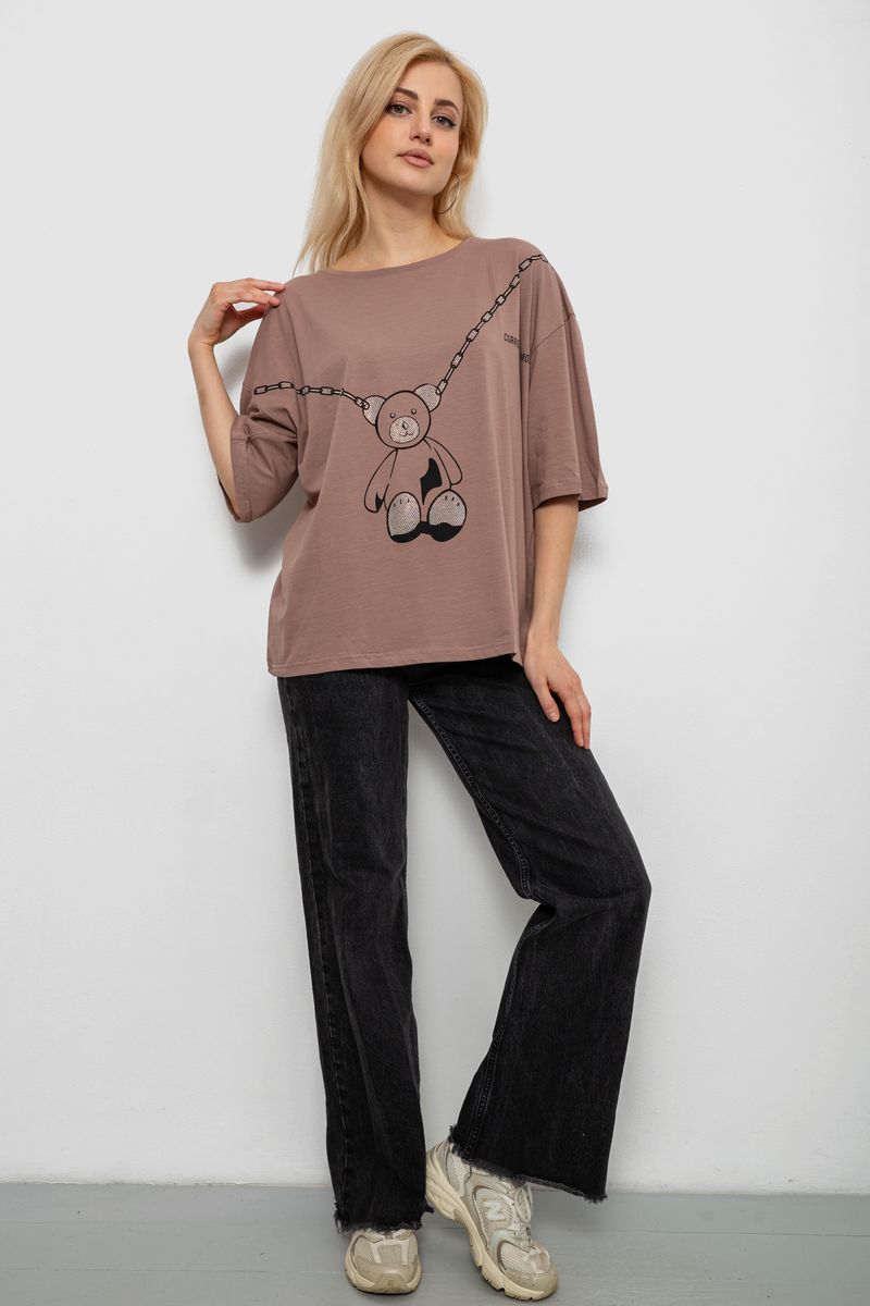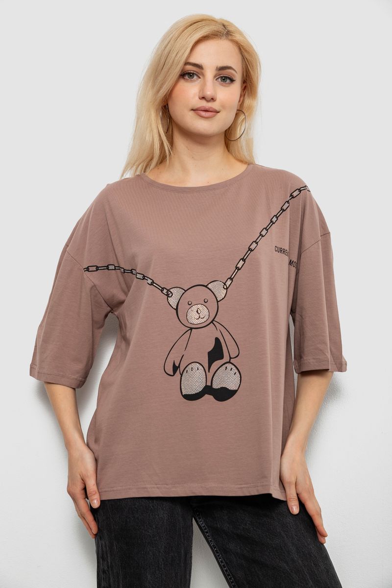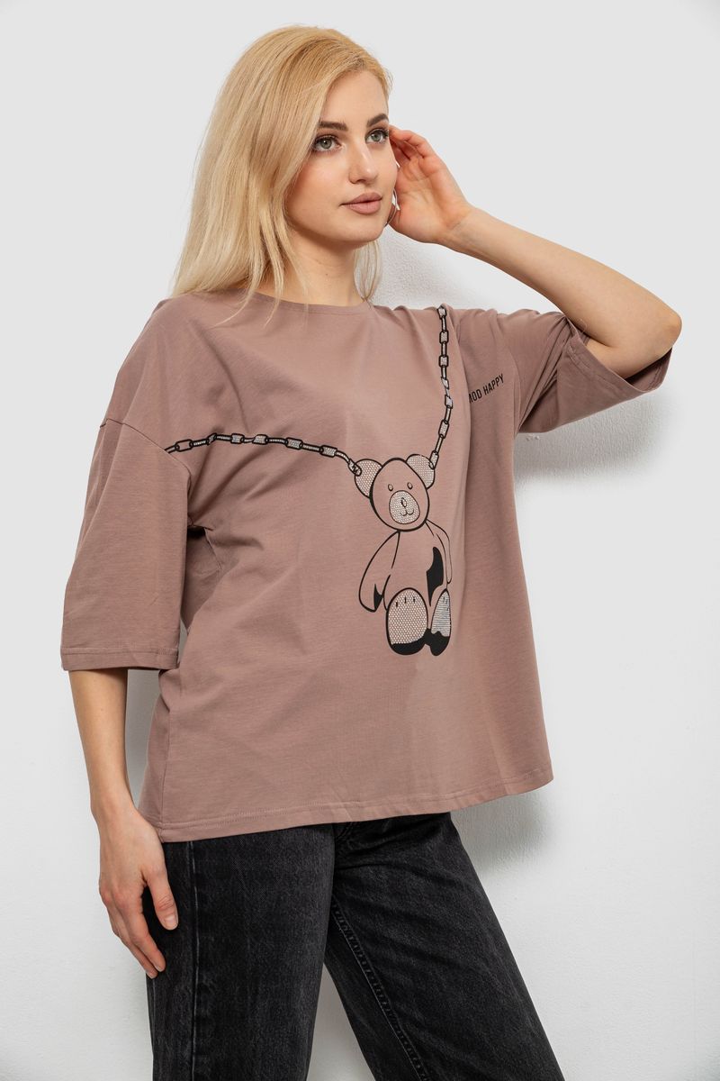 Футболка жіноча з принтом, колір мокко, 244R2016 : Колір - Мокко, Розмір - L (арт. 244R2016)