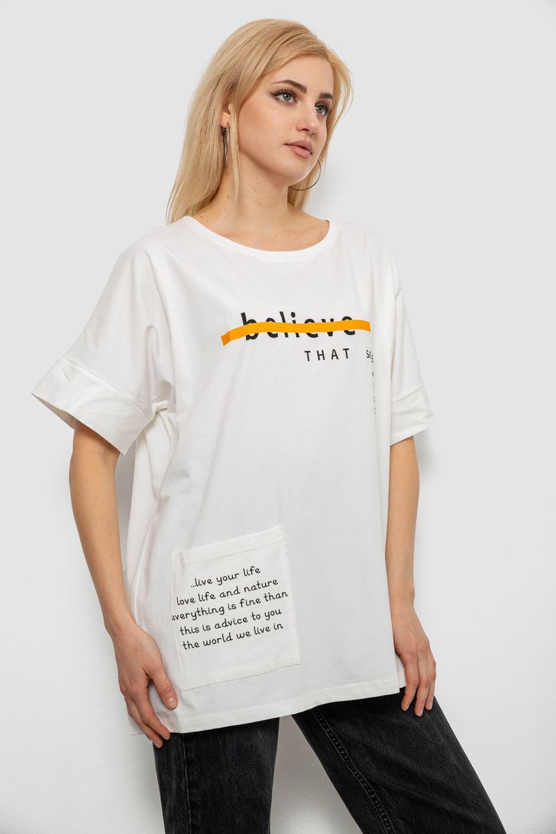 Футболка жіноча з принтом, колір молочний, 244R4020