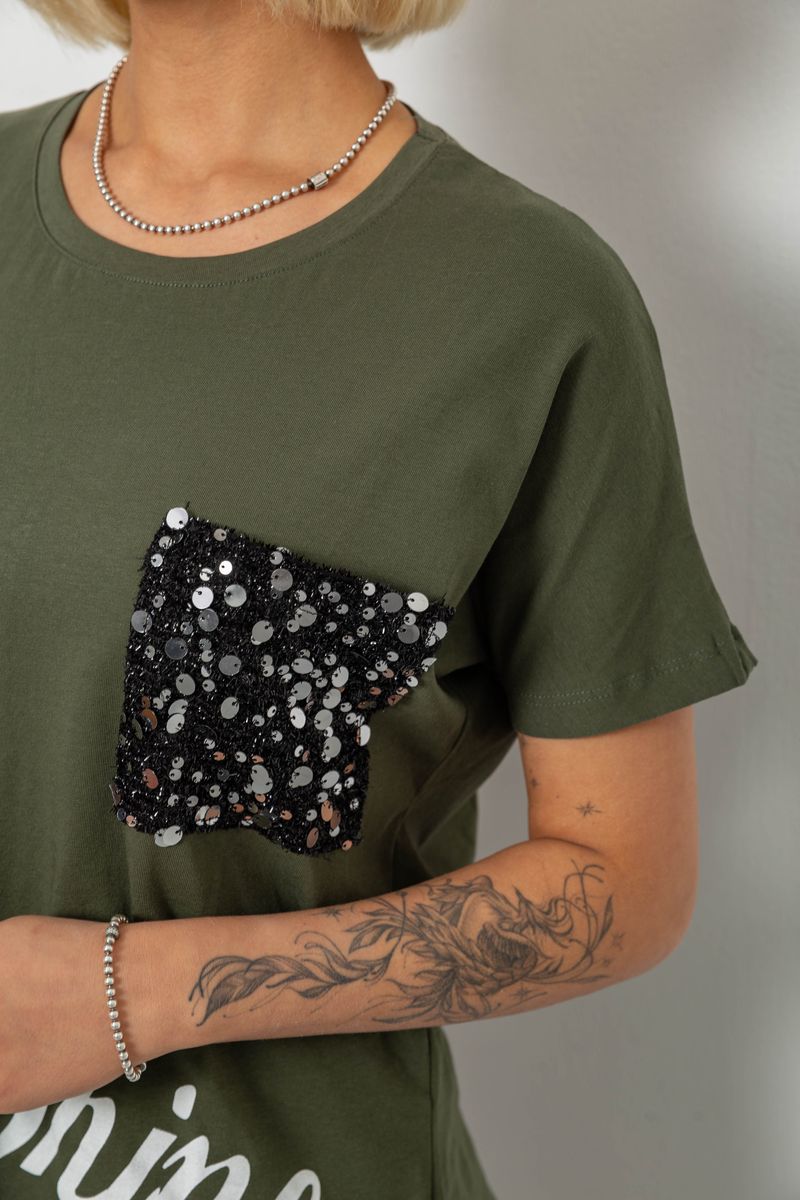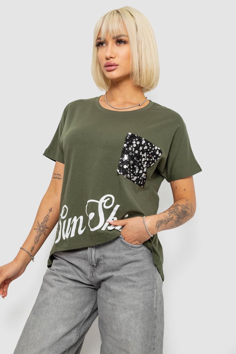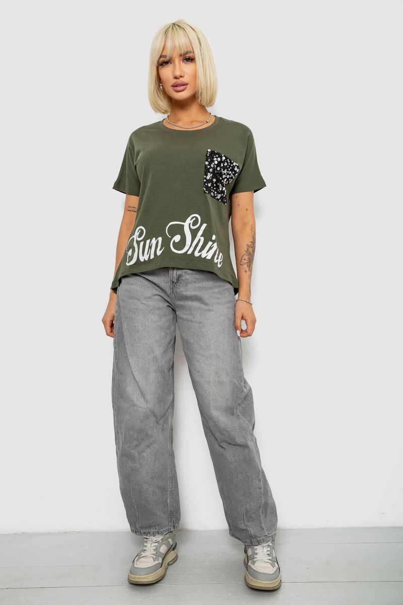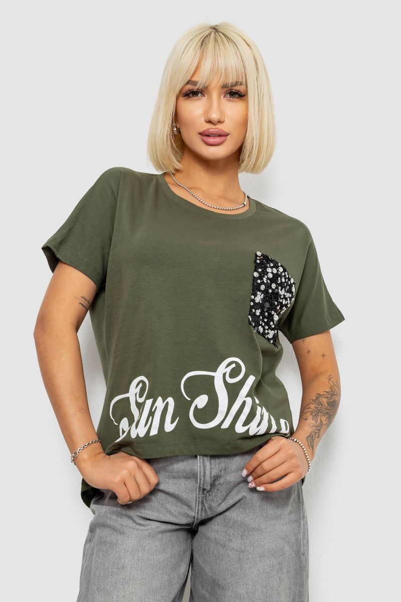 Футболка жіноча з принтом, колір хакі, 244R2057