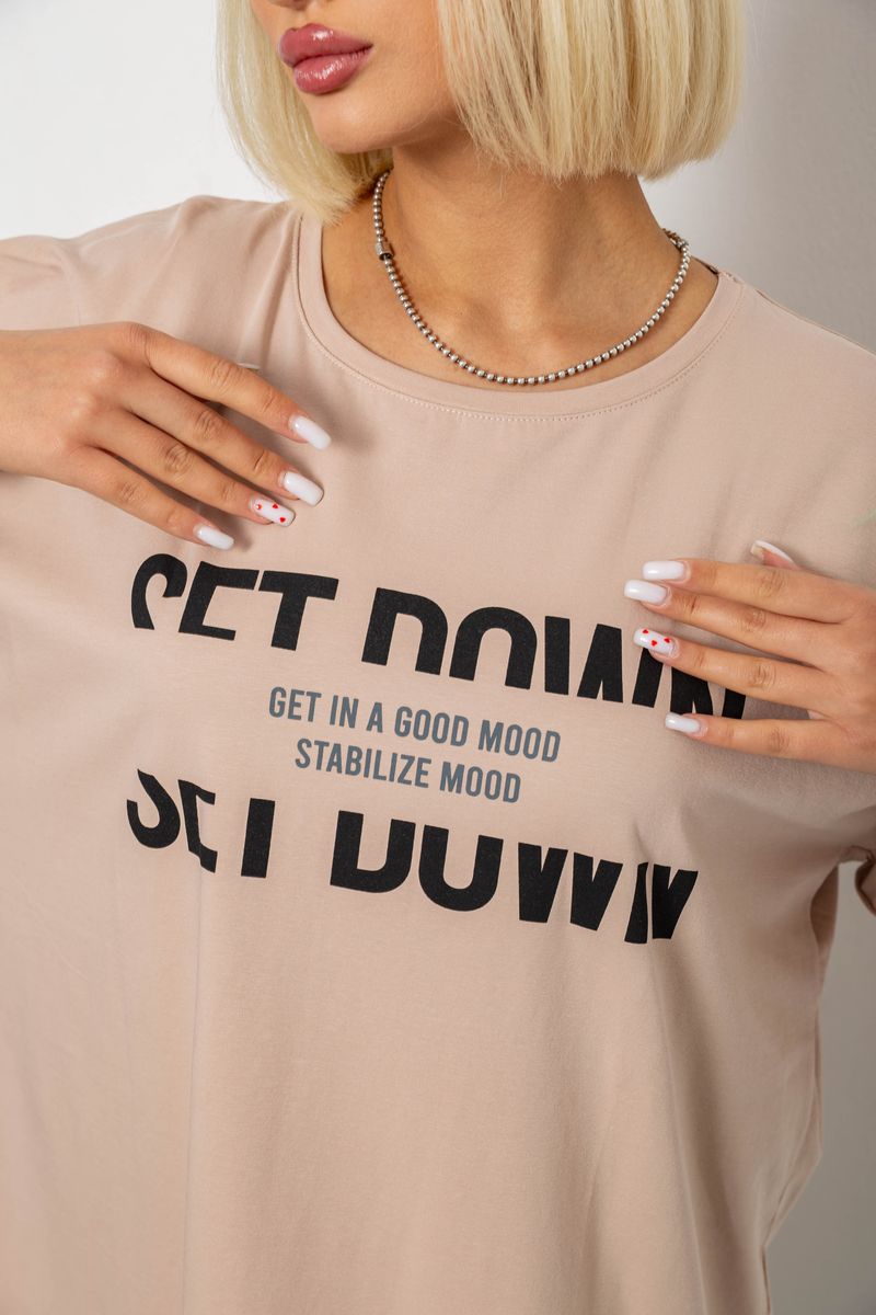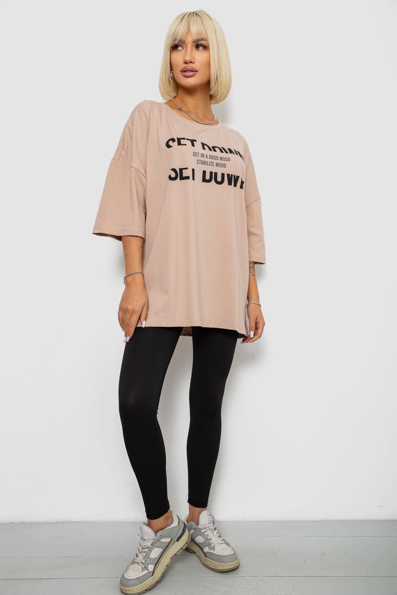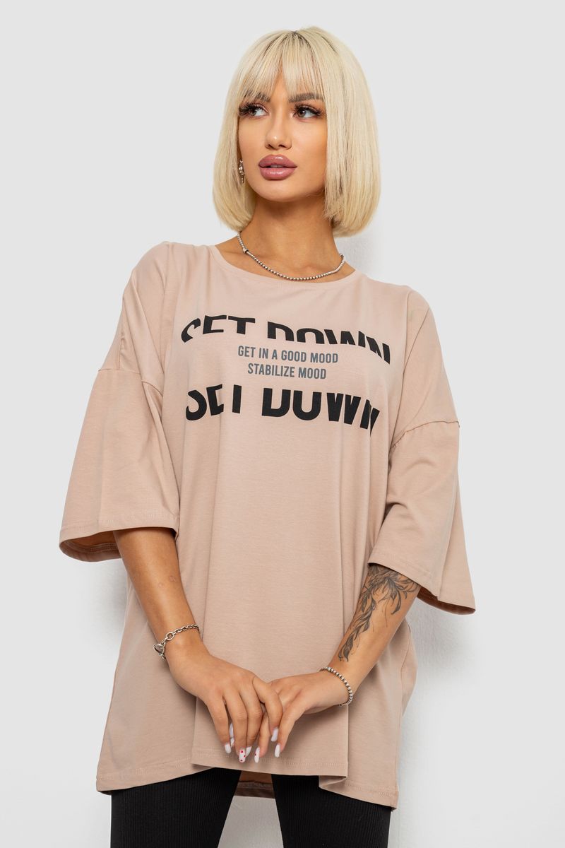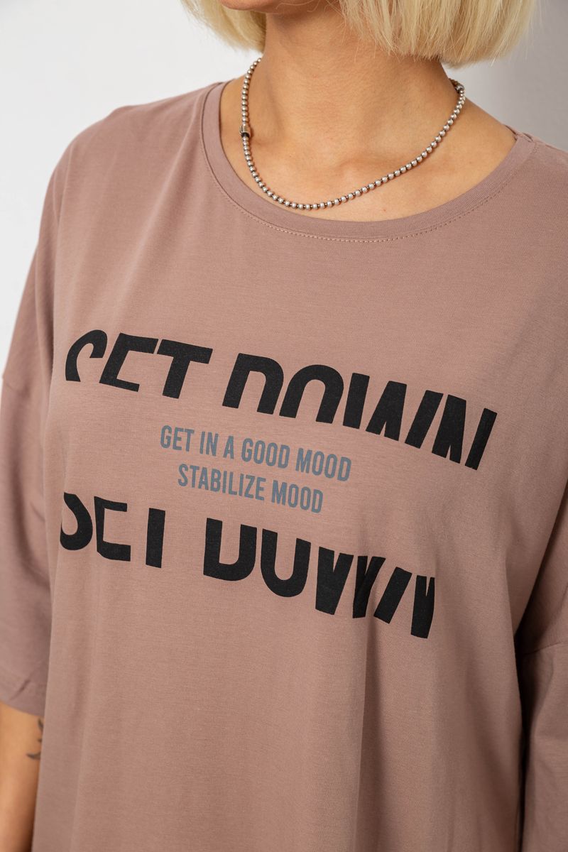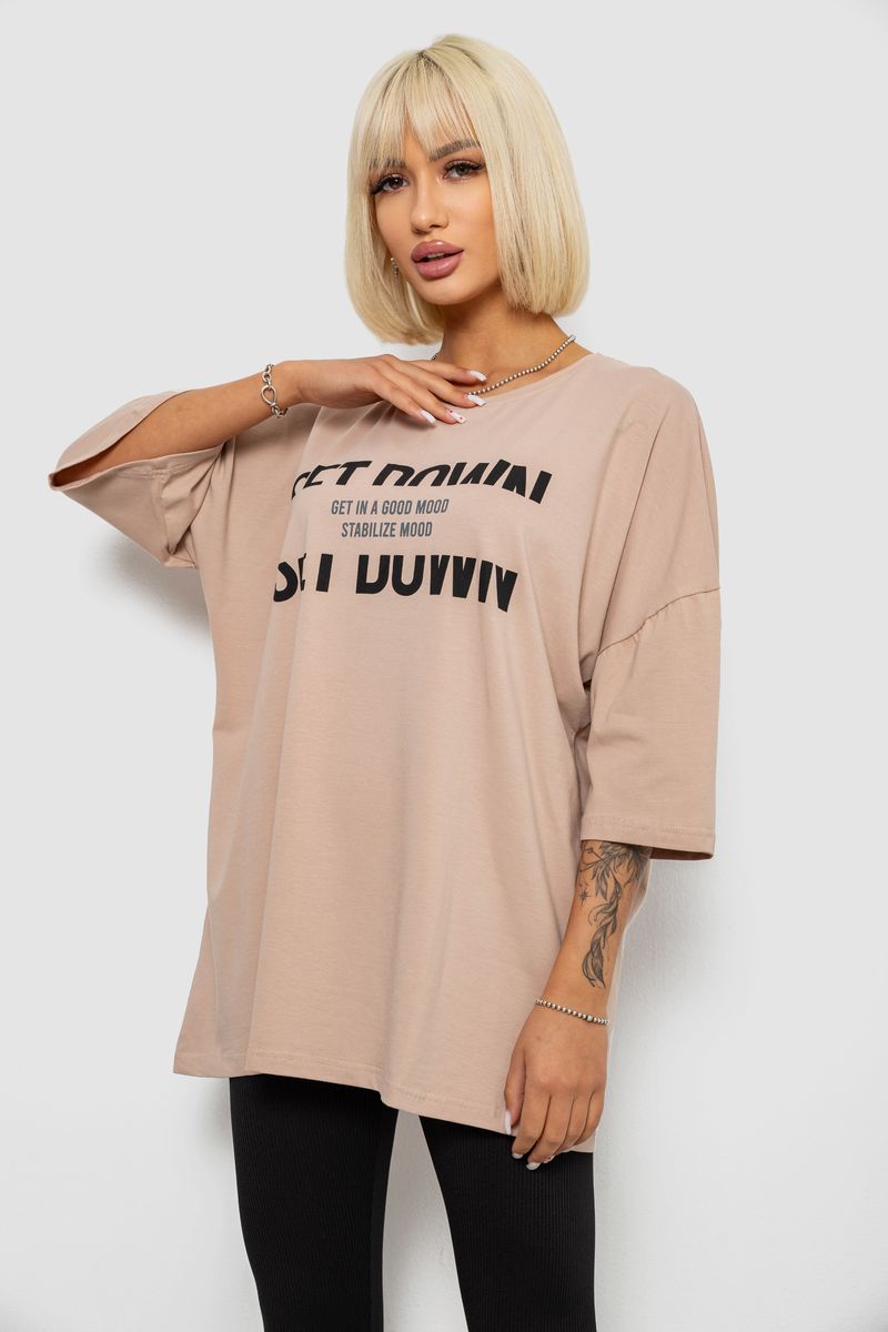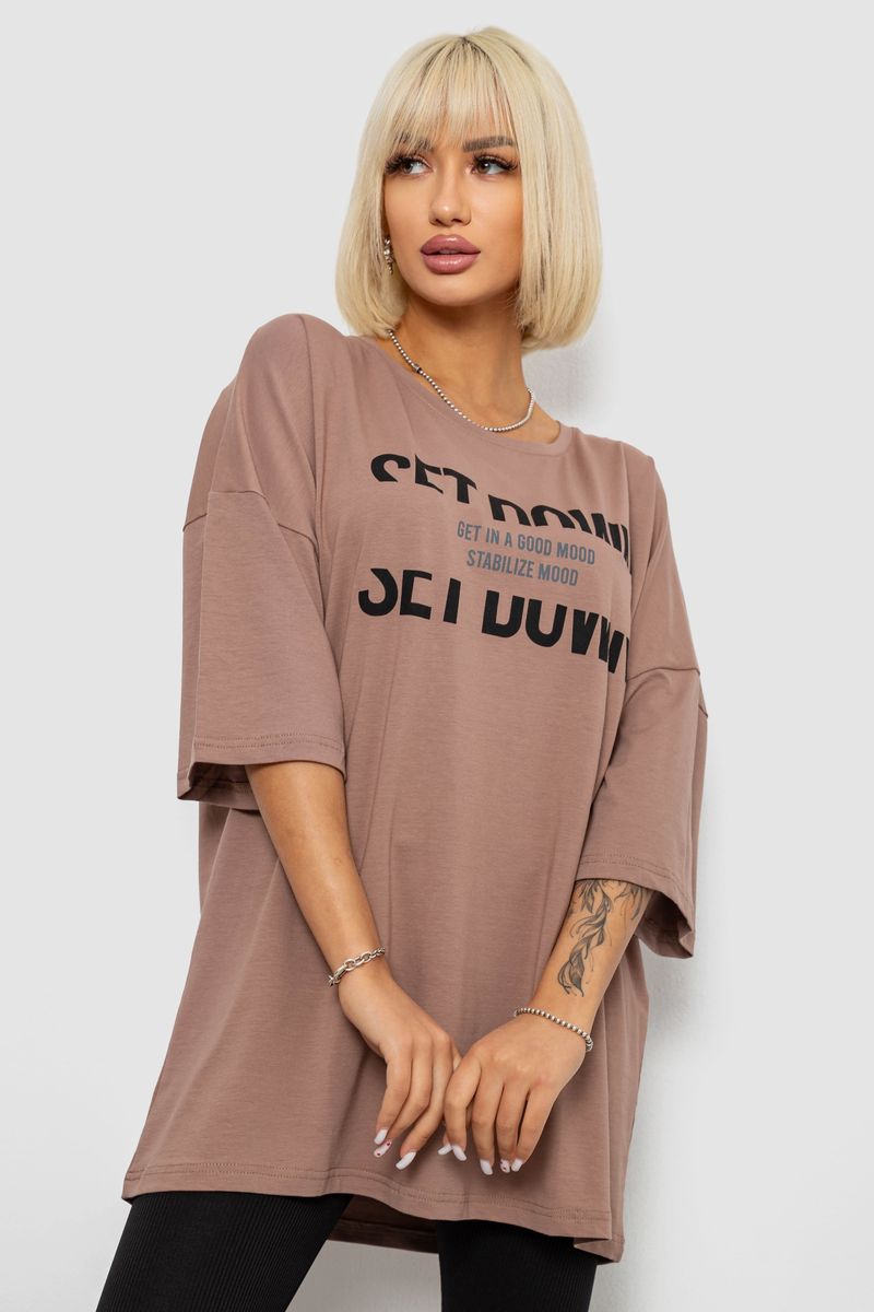 Футболка жіноча з принтом, колір мокко, 244R3012-5