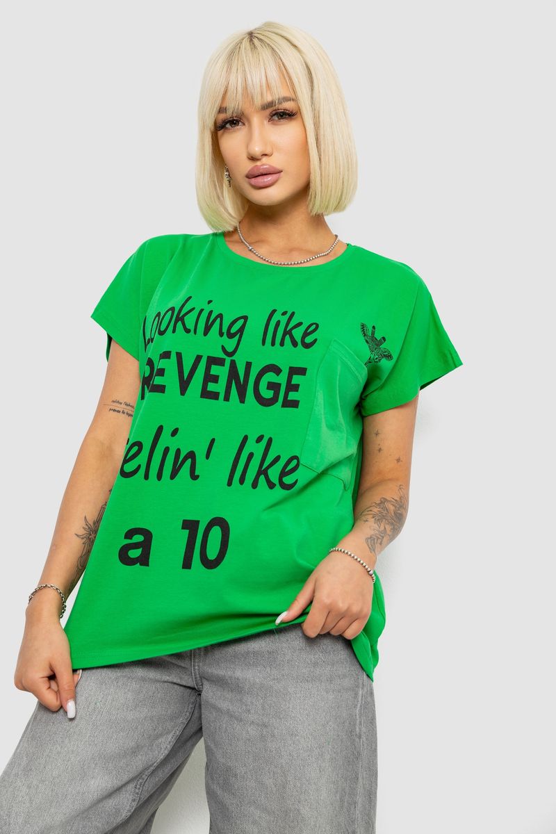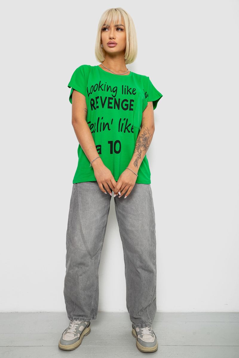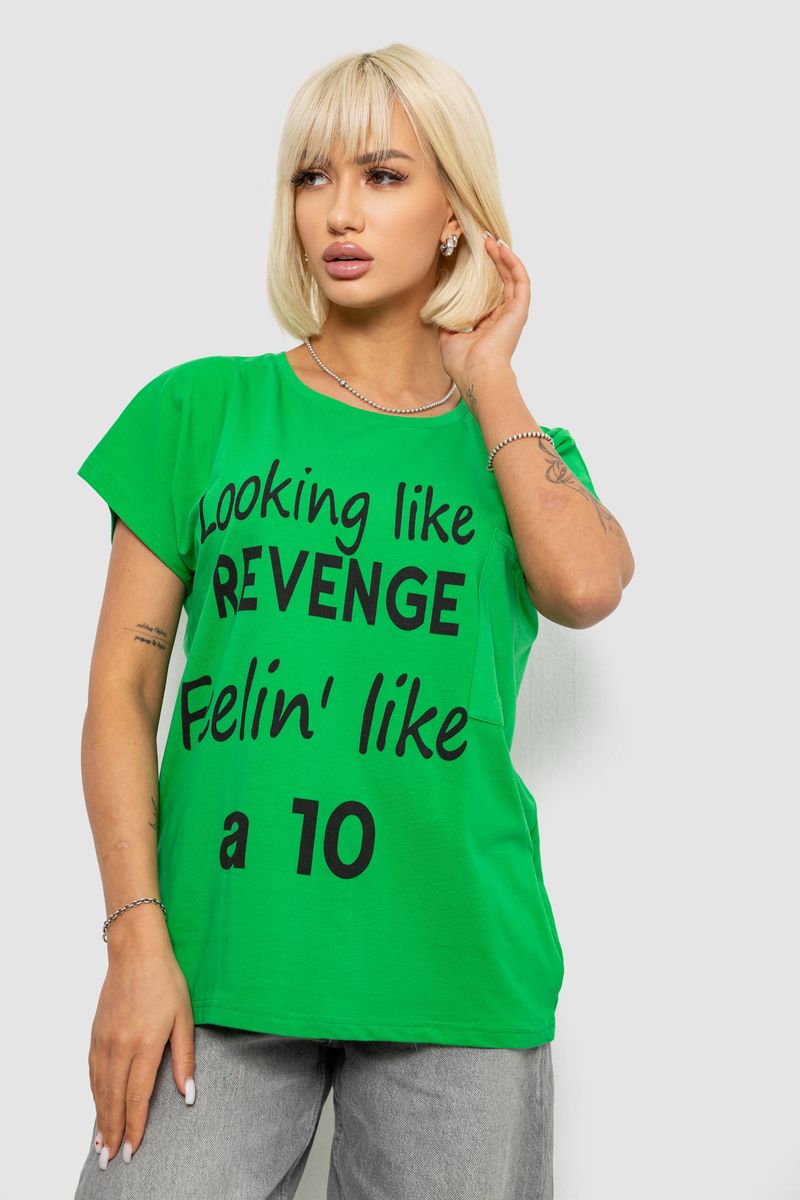 Футболка жіноча з принтом, колір зелений, 244R3013-5