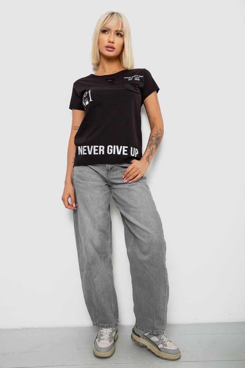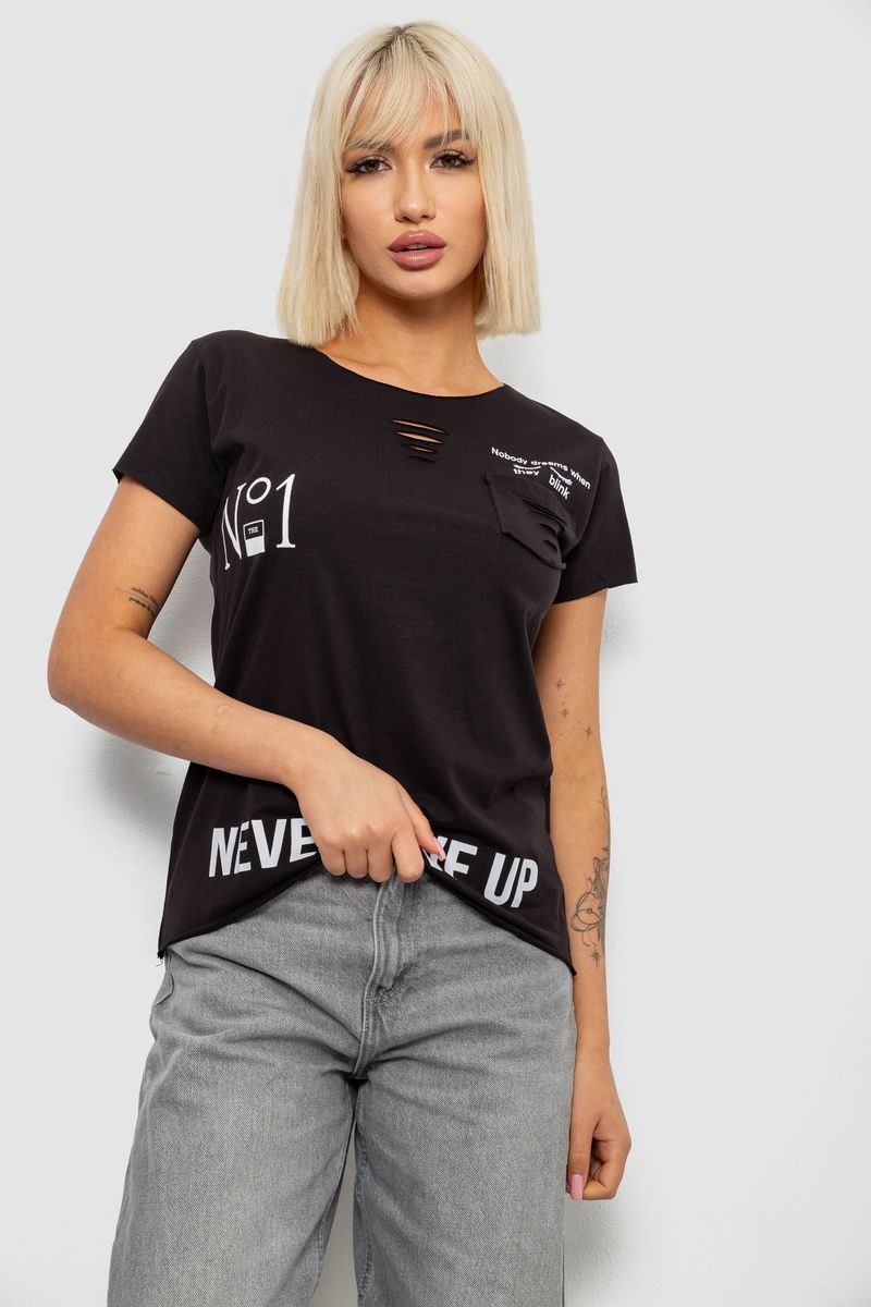 Футболка жіноча однотонна, колір чорний, 244R2214-6